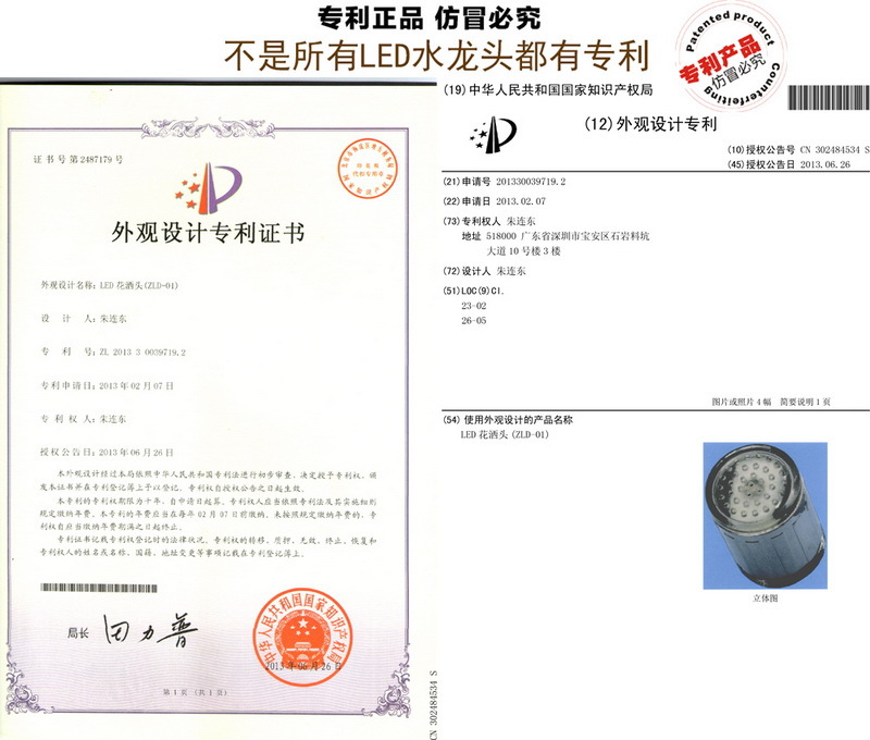*温馨提示*:我们生产的LED花洒、LED水龙头灯(水嘴),都是水力发电的,无需另外的电源,但需要较大的(3公斤或以上)水压发电,才能工作亮灯!且只是亮灯,不会加热!!!