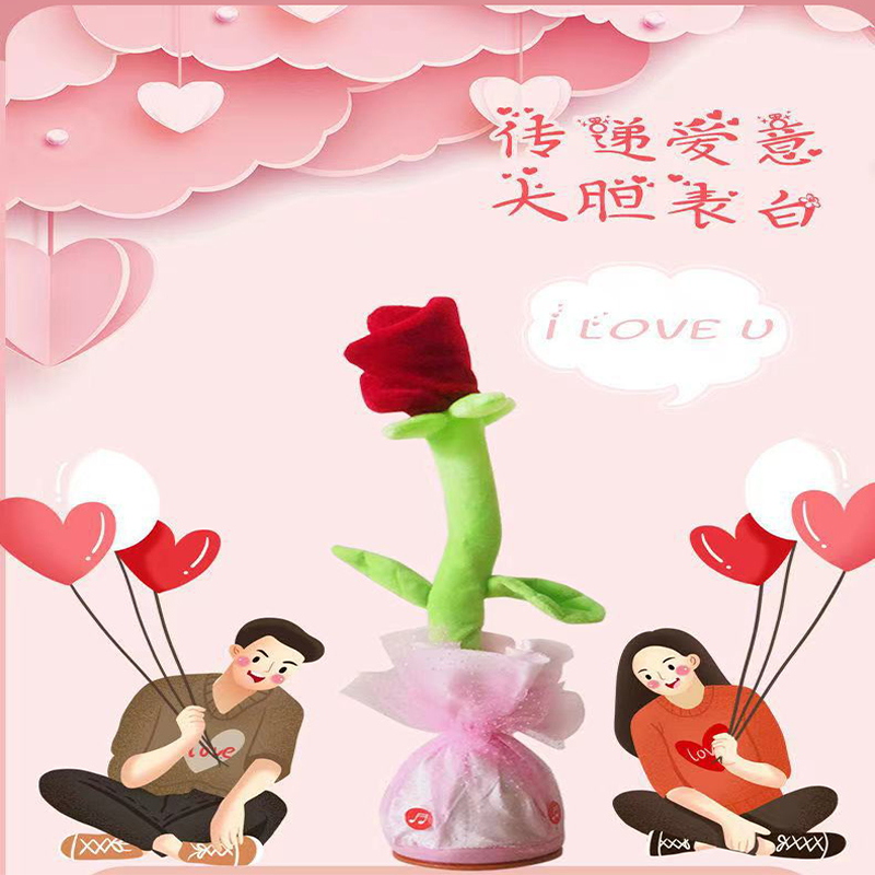 Dancing rose sand sculpture swaying plush rose dance toy singing and glowing