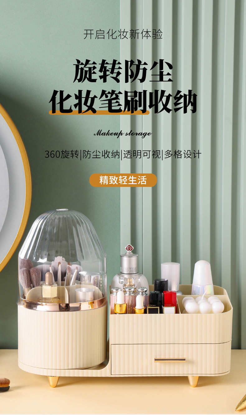 Storage bucket Large capacity multi-function rotating dustproof desktop makeup brush storage bucket Cosmetics storage rack