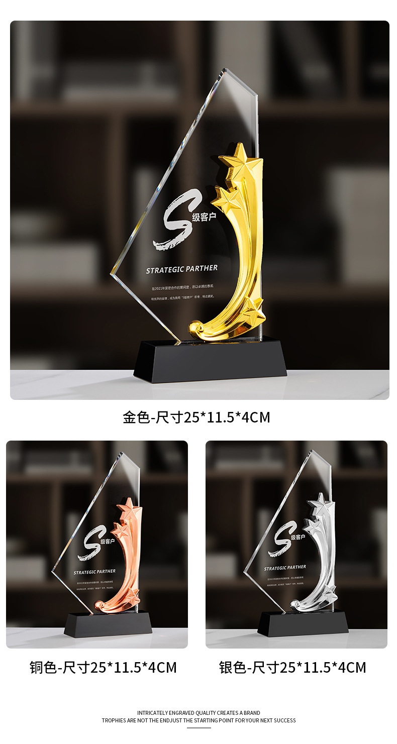 Small dudu XDJZ-SJ03 new manufacturer gold silver copper trophy custom crystal resin metal trophy Crystal pentagonal star trophy
