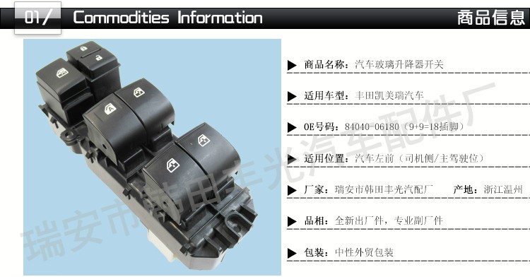 Factory direct sales for Toyota Camry car 18 years of automotive glass elevator switch assembly 84820-0K270/84040-06180