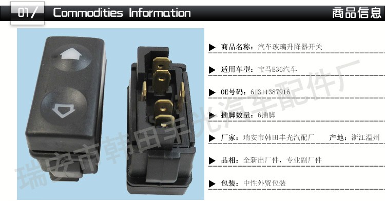 Factory direct sales for automobile 5 insert glass door electronic control button window lift switch with black terminal Peugeot 406/ Jiangling Baodian/Fujian Benz commercial vehicle
