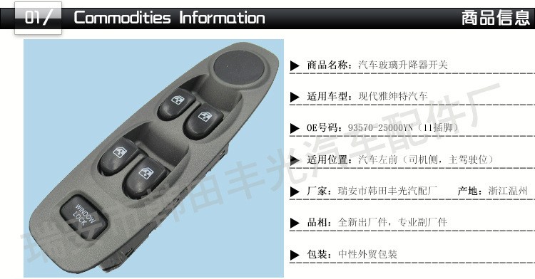 Factory direct for modern switches Accent electric door and window switches Automotive glass lifter switches 9357025000YN/93570-25000