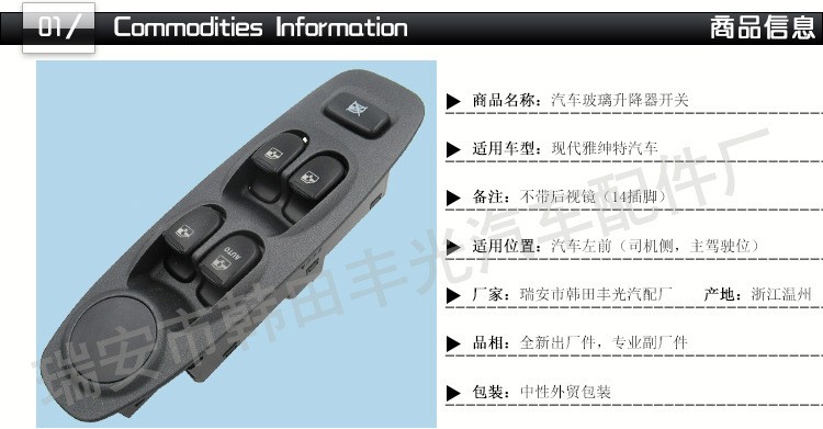 Factory direct for modern electric door and window switch Accent glass lifter switch without rearview mirror without rearview mirror, selling in the Middle East