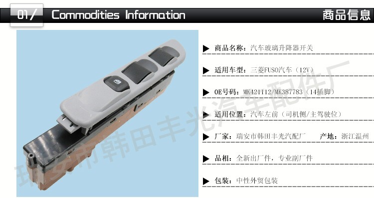 Mitsubishi FUSO glass door electronic control switch 12V car right front window lift button MK387783