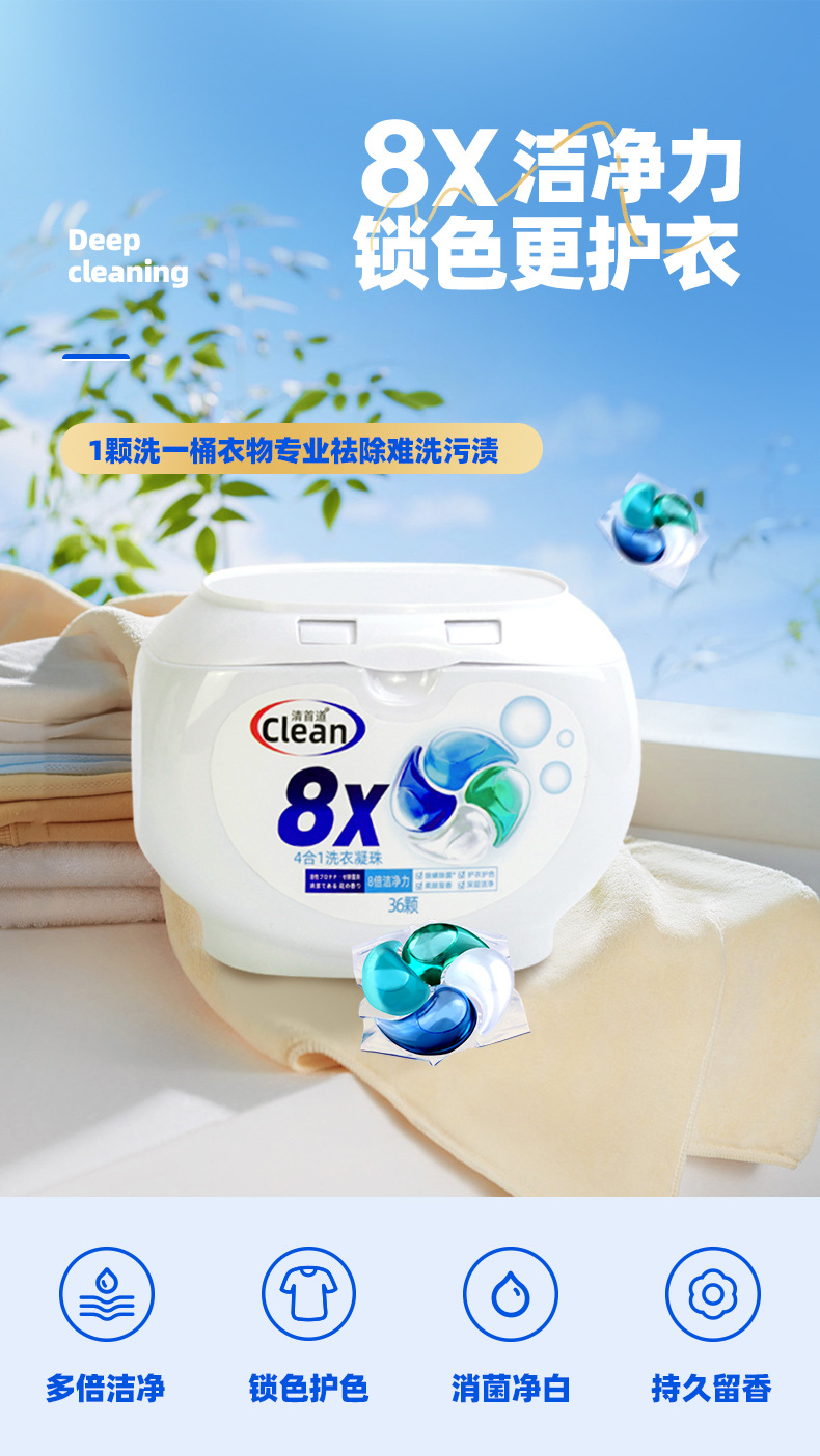 Qingshou Road 8X 4-in-1 laundry beads Source factory direct supply of soft stay fragrance clean clothes color protection multi-effect laundry beads