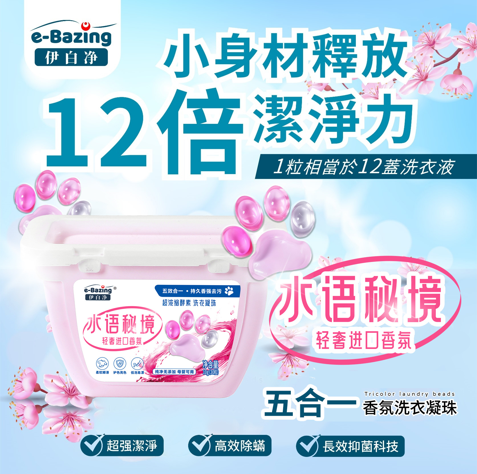 Flower swabbing square 4-in-1 laundry condensation bead box clean, flexible, bactericidal, mite and fragrance 8 times clean power wholesale
