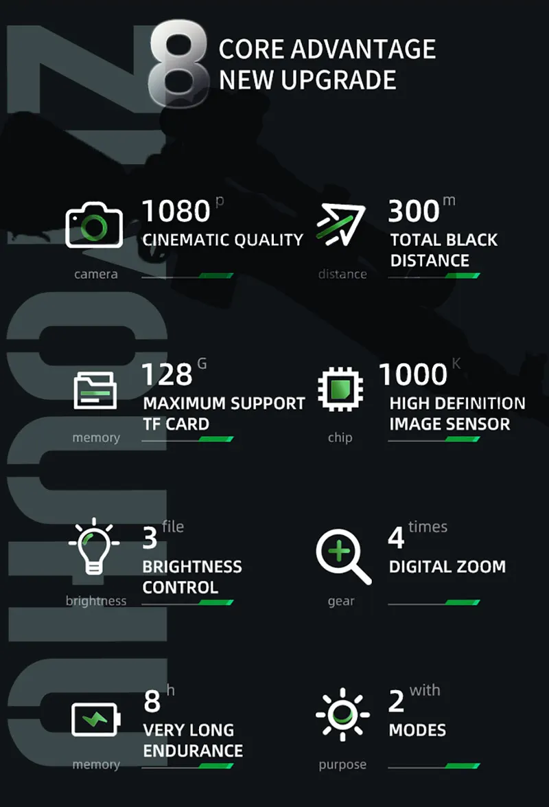 New Tacticle Helmet Night Vision Goggles HD 1080P Video Camera 8X Zoom NVG Mount Head Mounted Hunting Infrared Night Binoculars