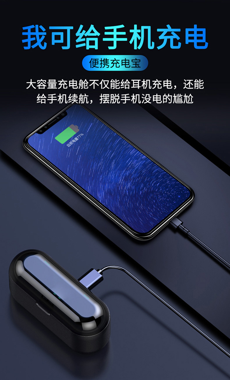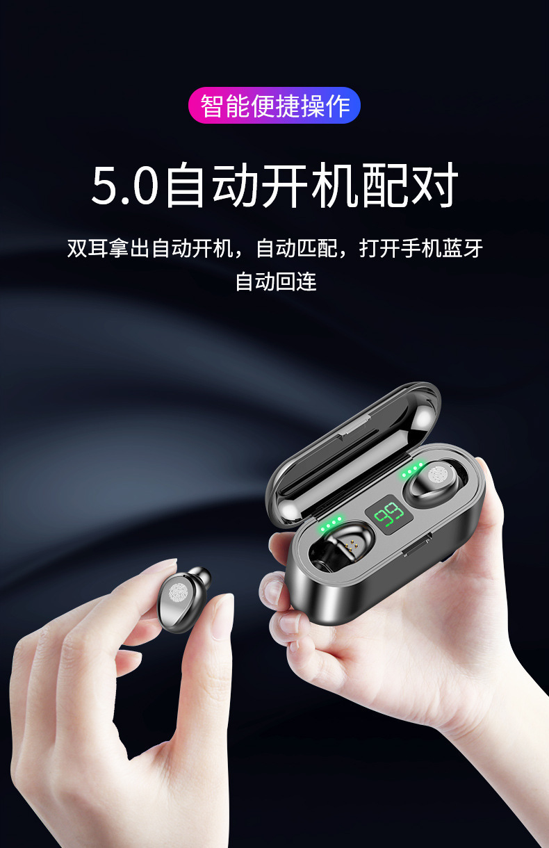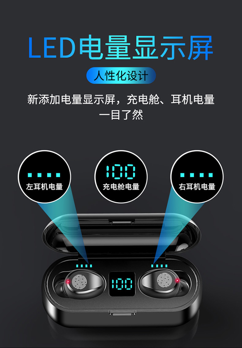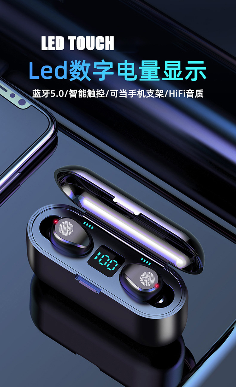 Cross-border explosive F9 Bluetooth headset Wireless touch digital display with charging bank ultra-long life sports TWS headset