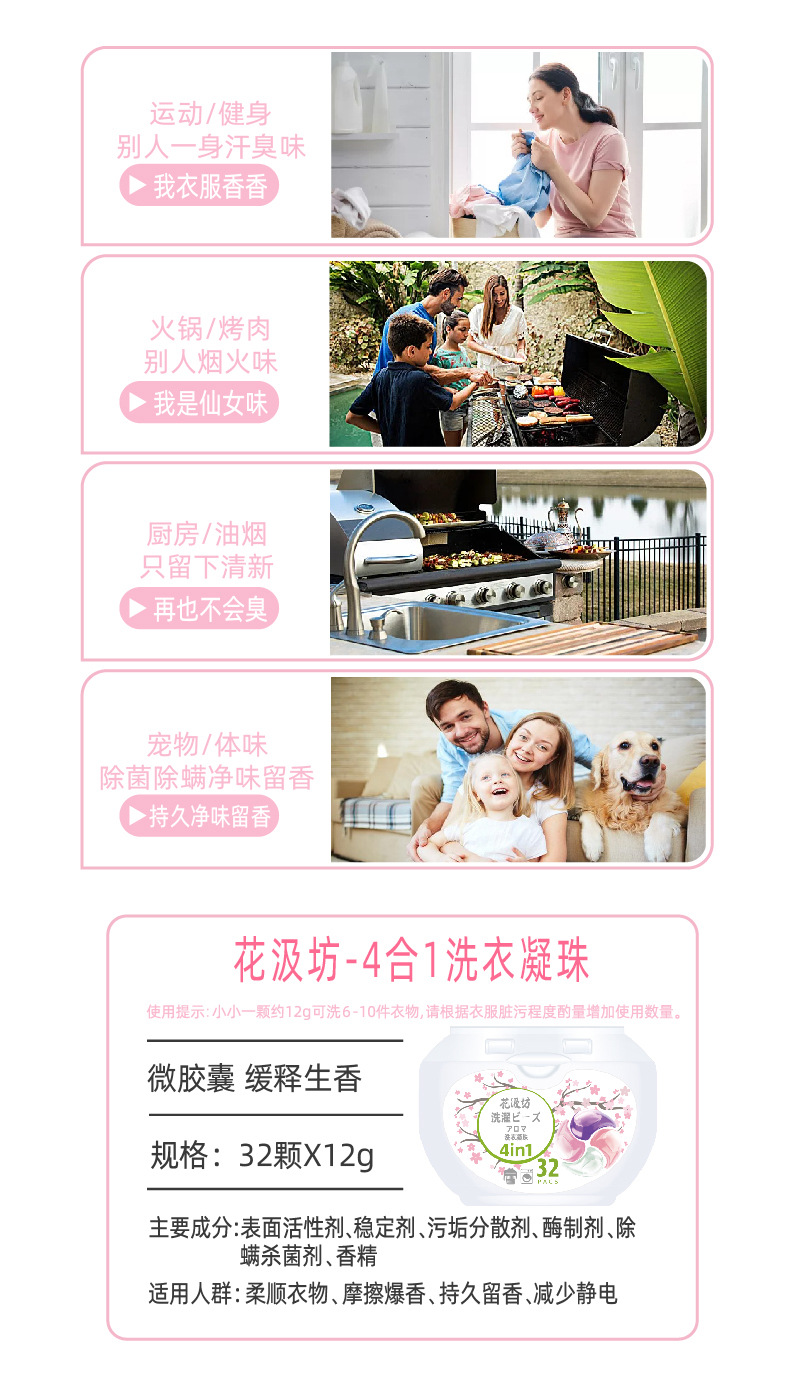 Huajifang Long Lasting Fragrance Detergent Detergent Softener 4-in-1 Laundry coagulant 32 *12g