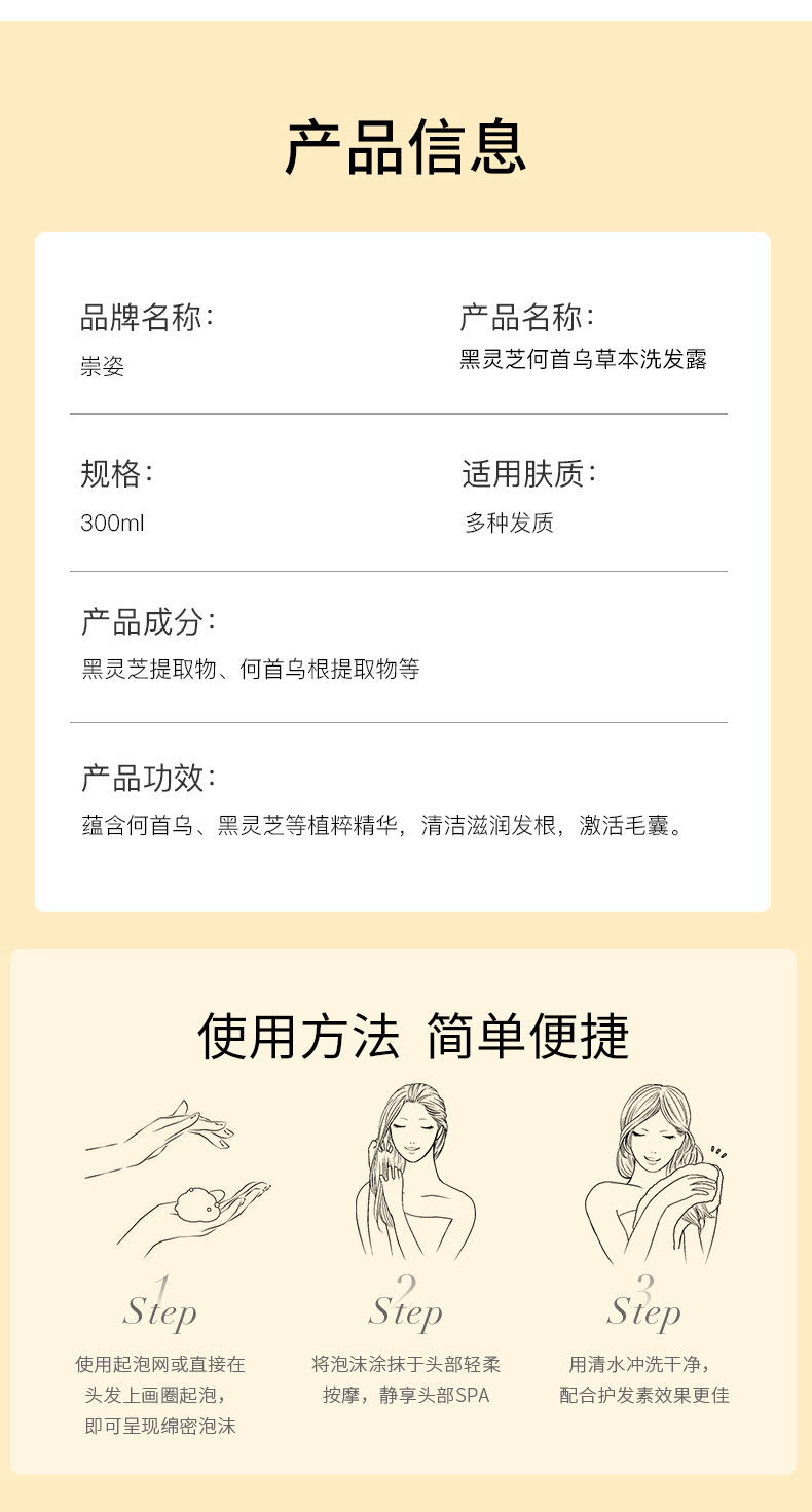 Authentic Polygonum multiflorum shampoo Camellia Seed Oil Control Conditioner Ginger Moxa Shampoo Cleansing Shampoo Cream