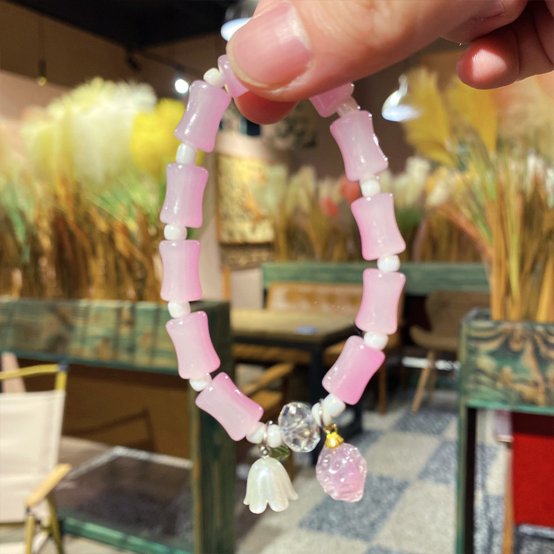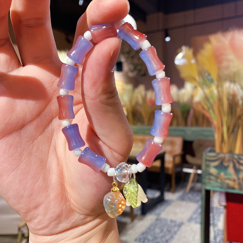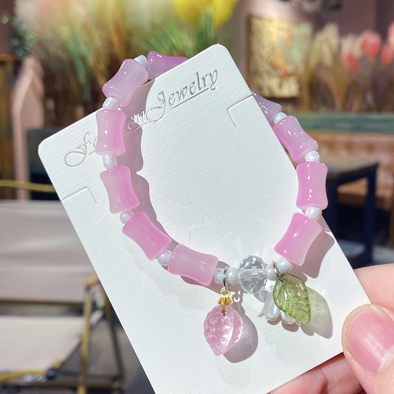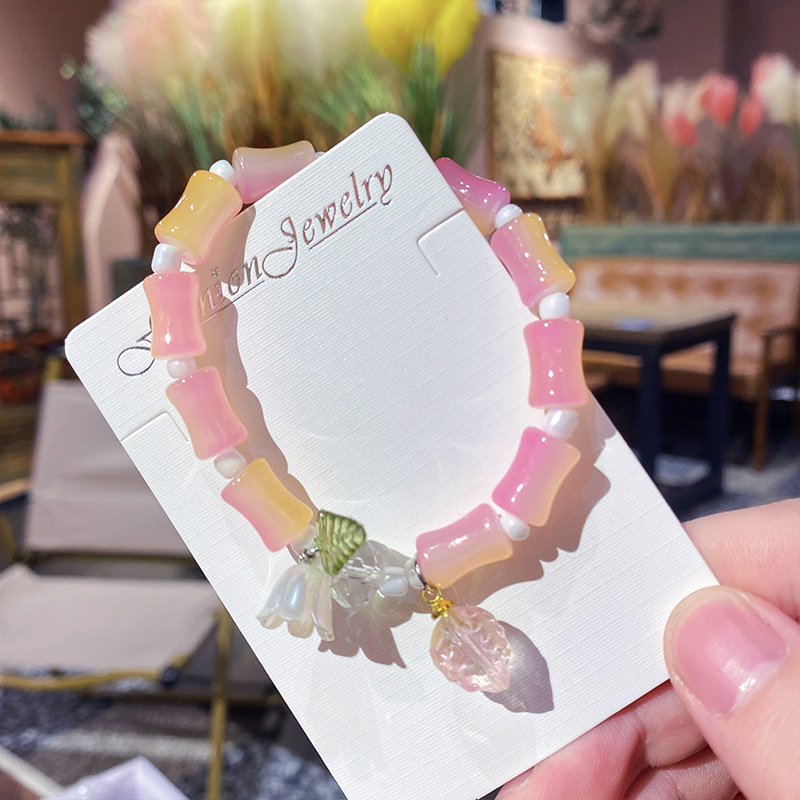 Explosive ice burst beads camellia crystal children's bracelet female summer powder crystal glass bracelet summer jewelry wholesale