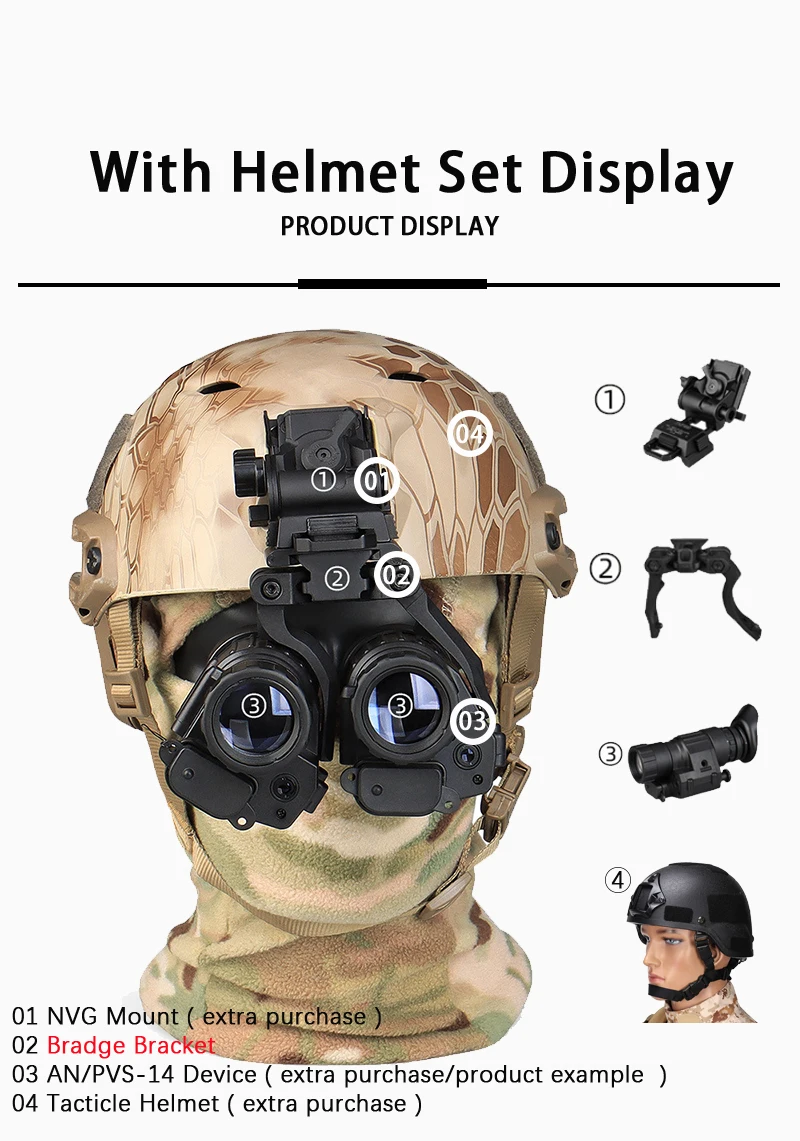 DVS-E New Adapter Bridging Mount Bracket for Night Vision Binoculars G24 Tactical FLIR M24 Recon Fast Helmet Dovetail Mounting