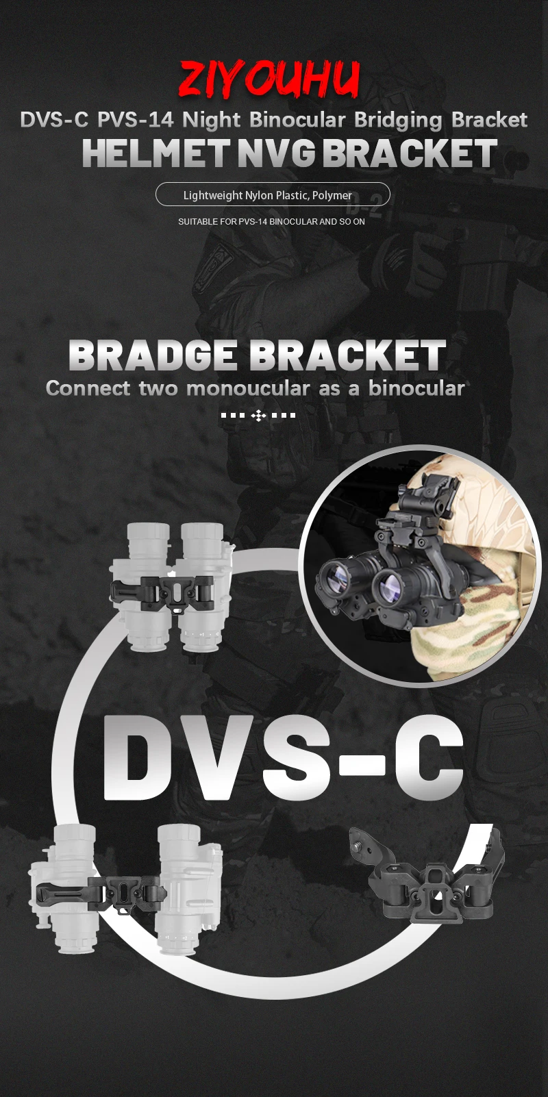 DVS-C Nylong Bridge Bracket Dual J-Arm Mount for AN/PVS-14 Round Screen Night Vision Binocular Bridging NVG Field of View Adjust