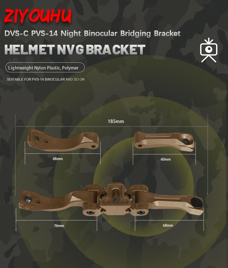 ZIYOUHU DVS-D New NVG Helmet Mount Accessories for L4G24 Dovetail PVS-15, PVS-18 Night Vision Monocular Binoculars Head Mounted
