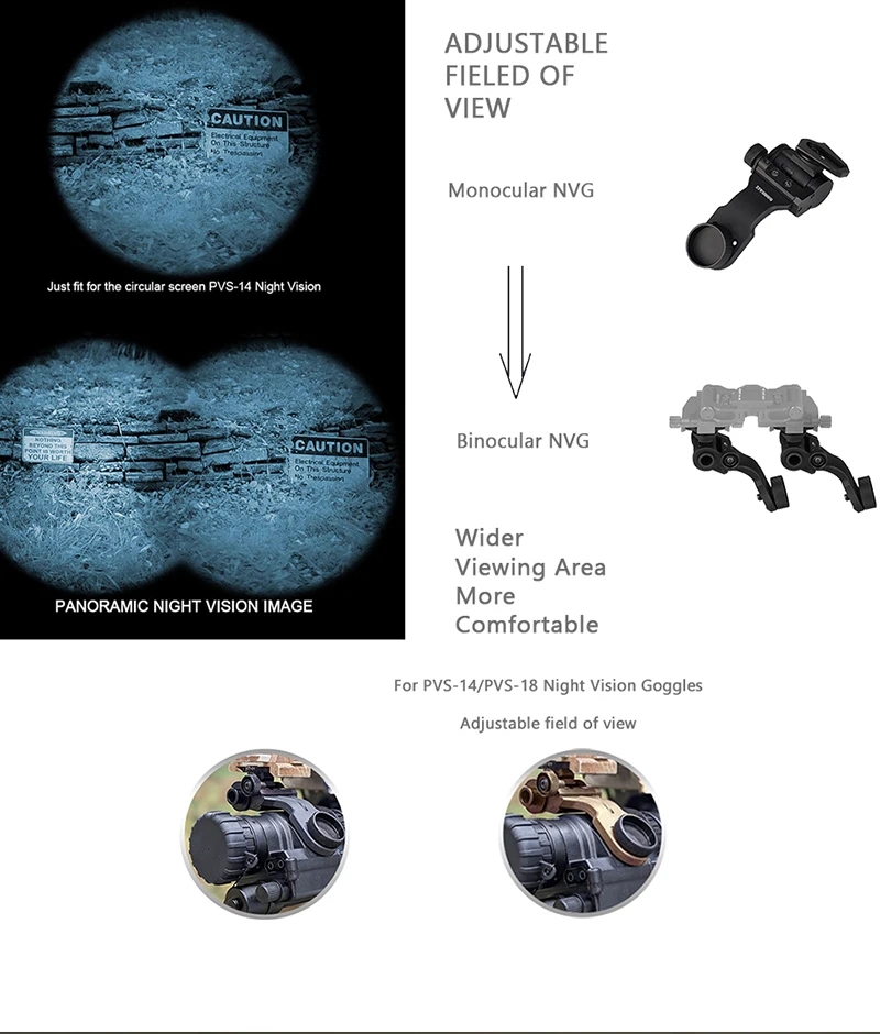 DVS-C Nylong Bridge Bracket Dual J-Arm Mount for AN/PVS-14 Round Screen Night Vision Binocular Bridging NVG Field of View Adjust
