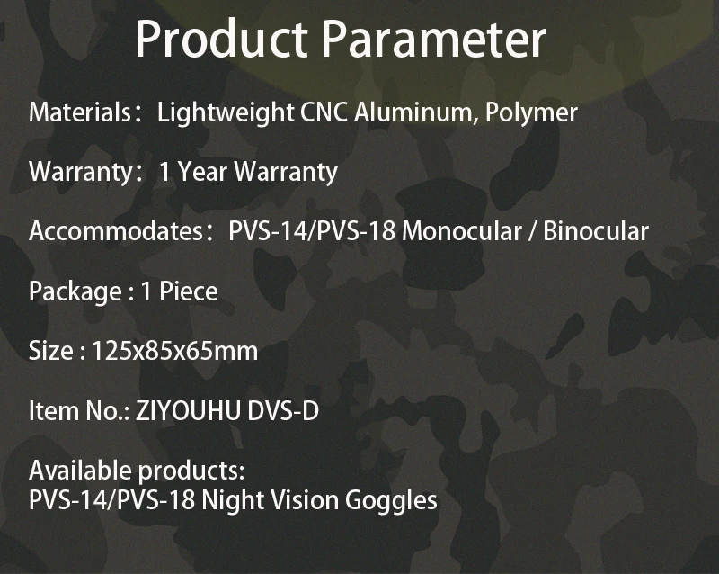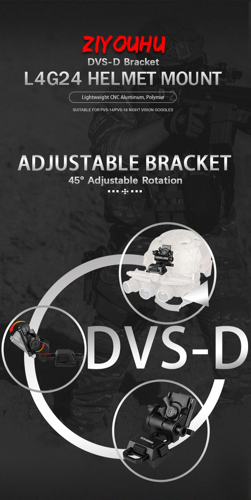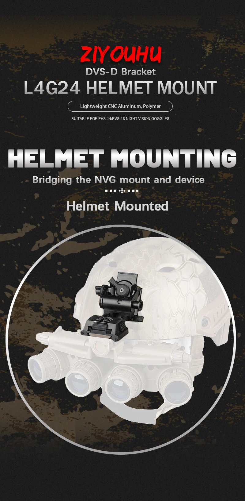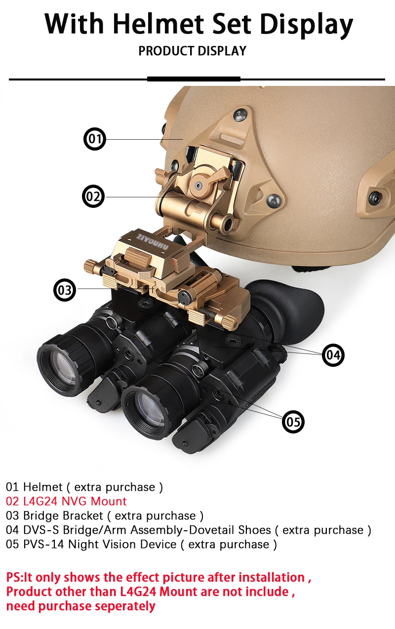 ZIYOUHU DVS-D New NVG Helmet Mount Accessories for L4G24 Dovetail PVS-15, PVS-18 Night Vision Monocular Binoculars Head Mounted
