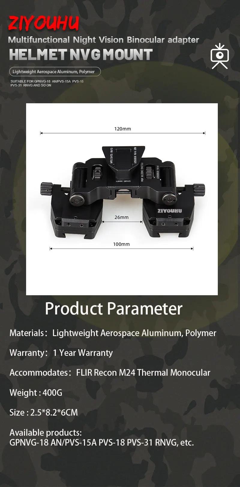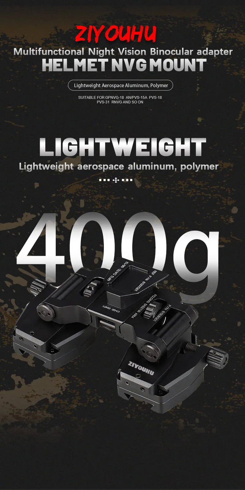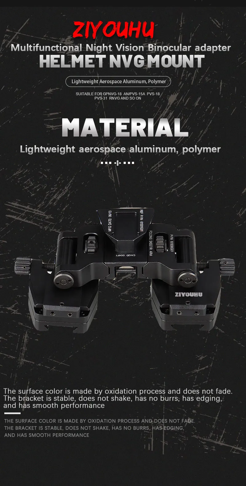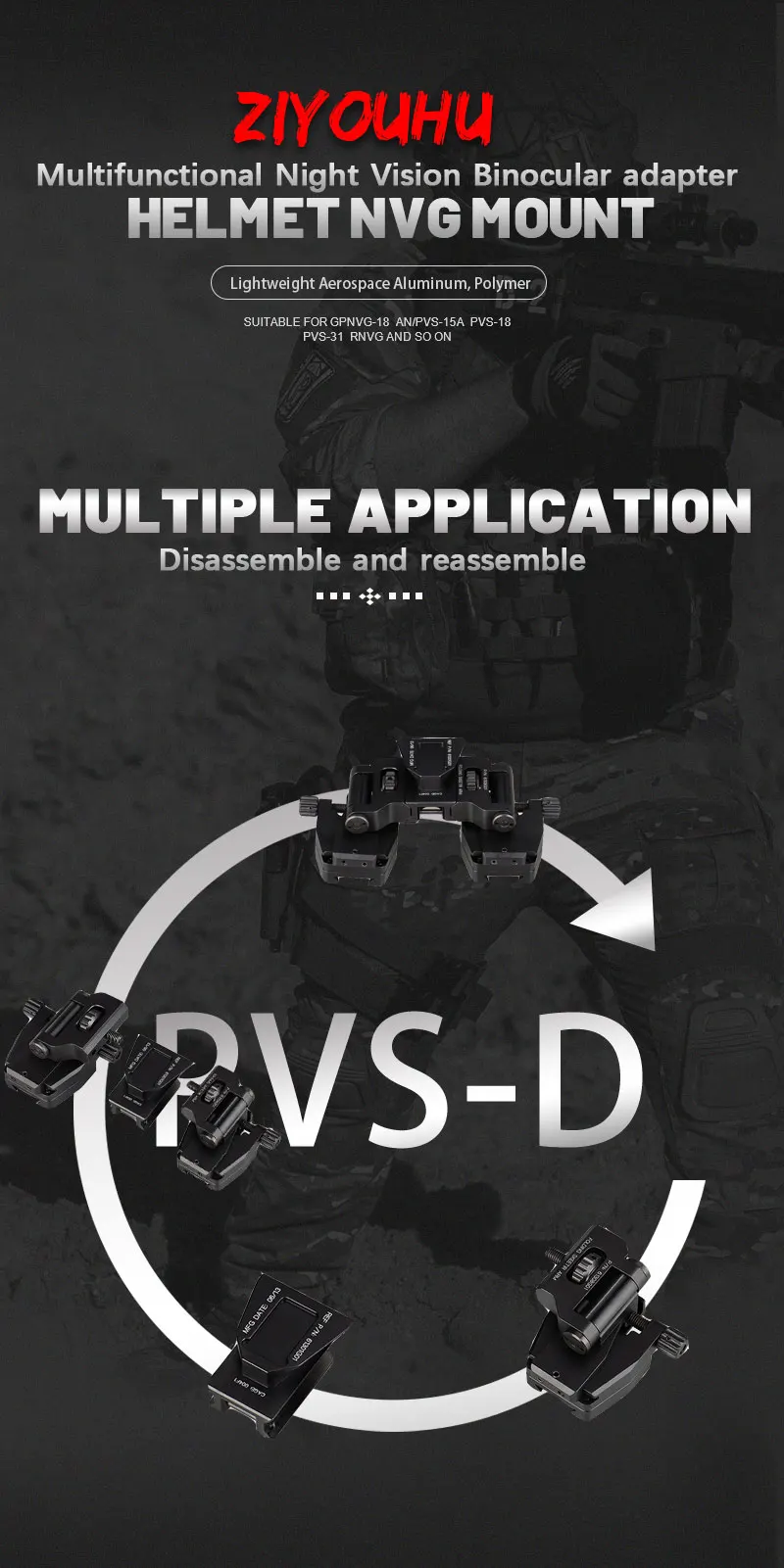 ZIYOUHU DVS-D New NVG Helmet Mount Accessories for L4G24 Dovetail PVS-15, PVS-18 Night Vision Monocular Binoculars Head Mounted