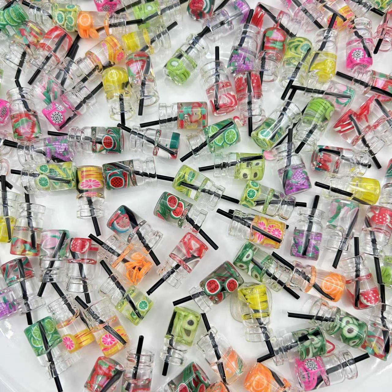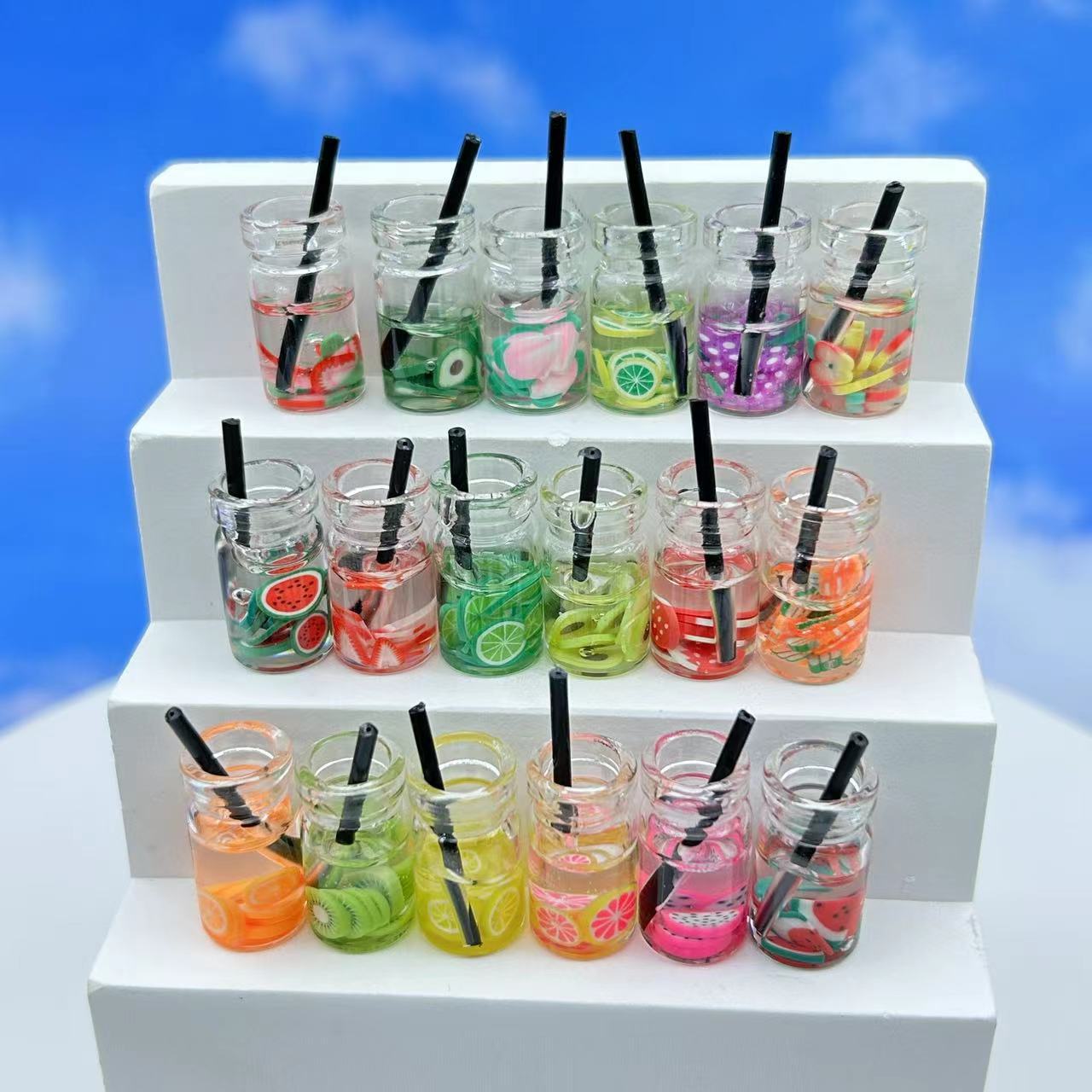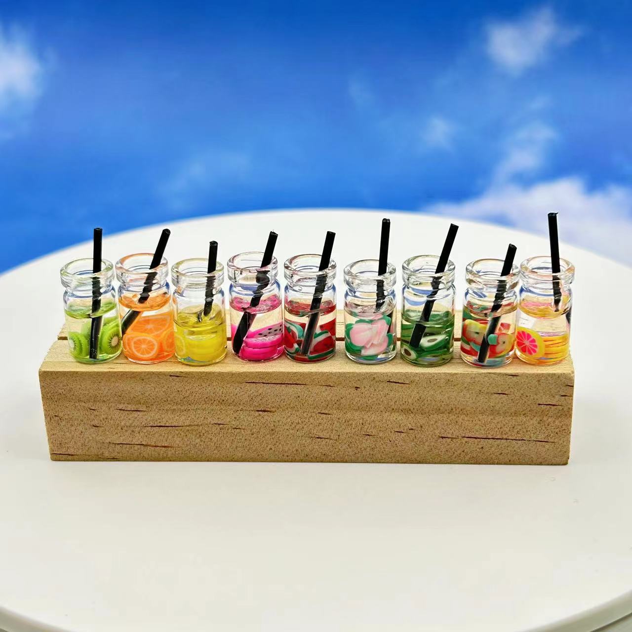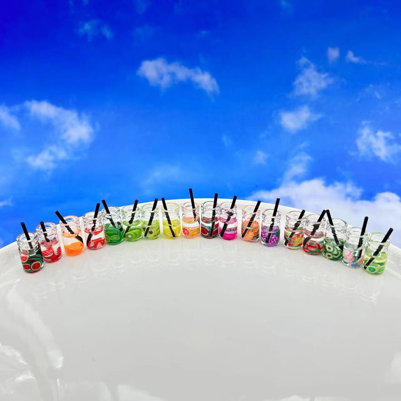 New simulation fruit milk tea drink straw DIY accessories cartoon food play ornaments keychain ornaments wholesale