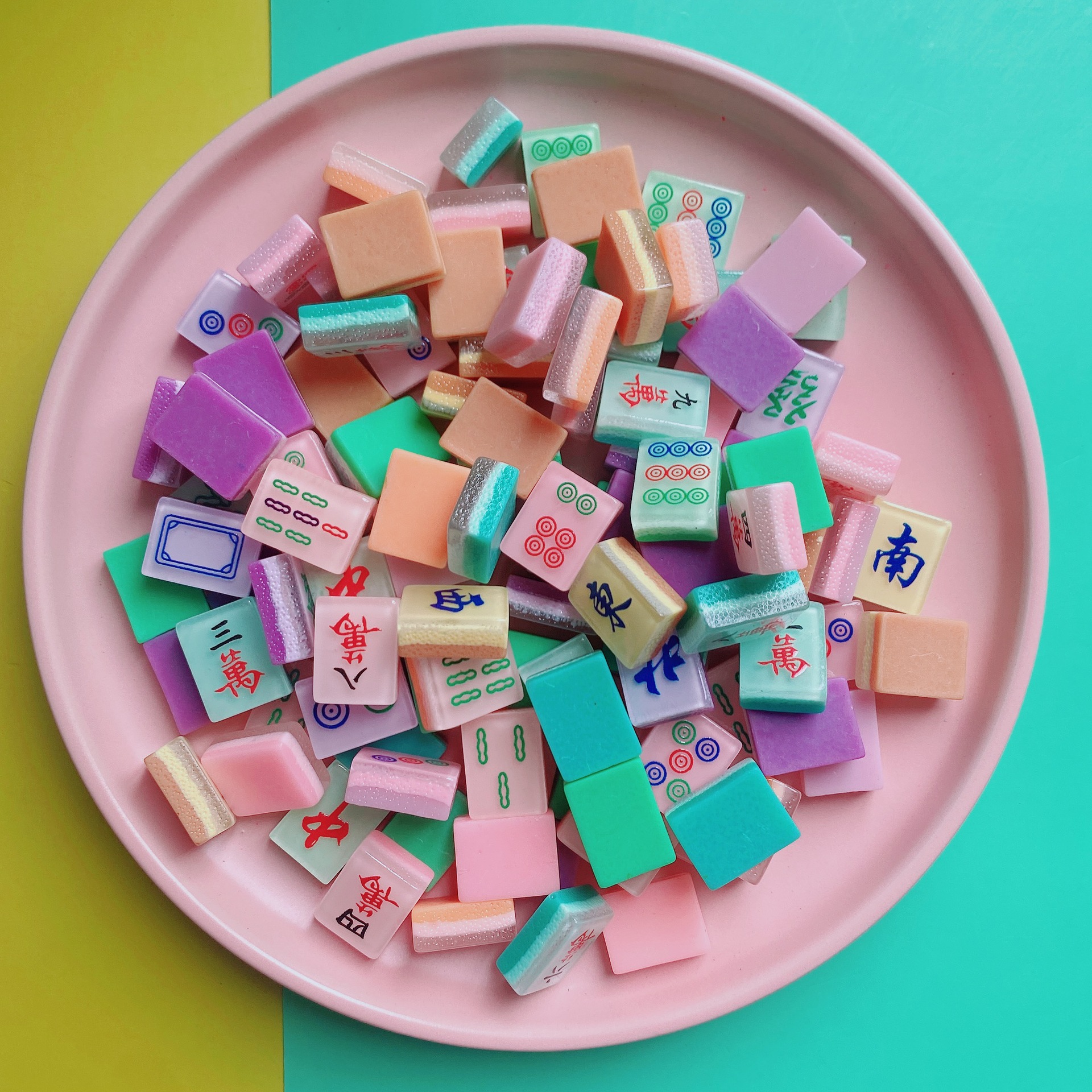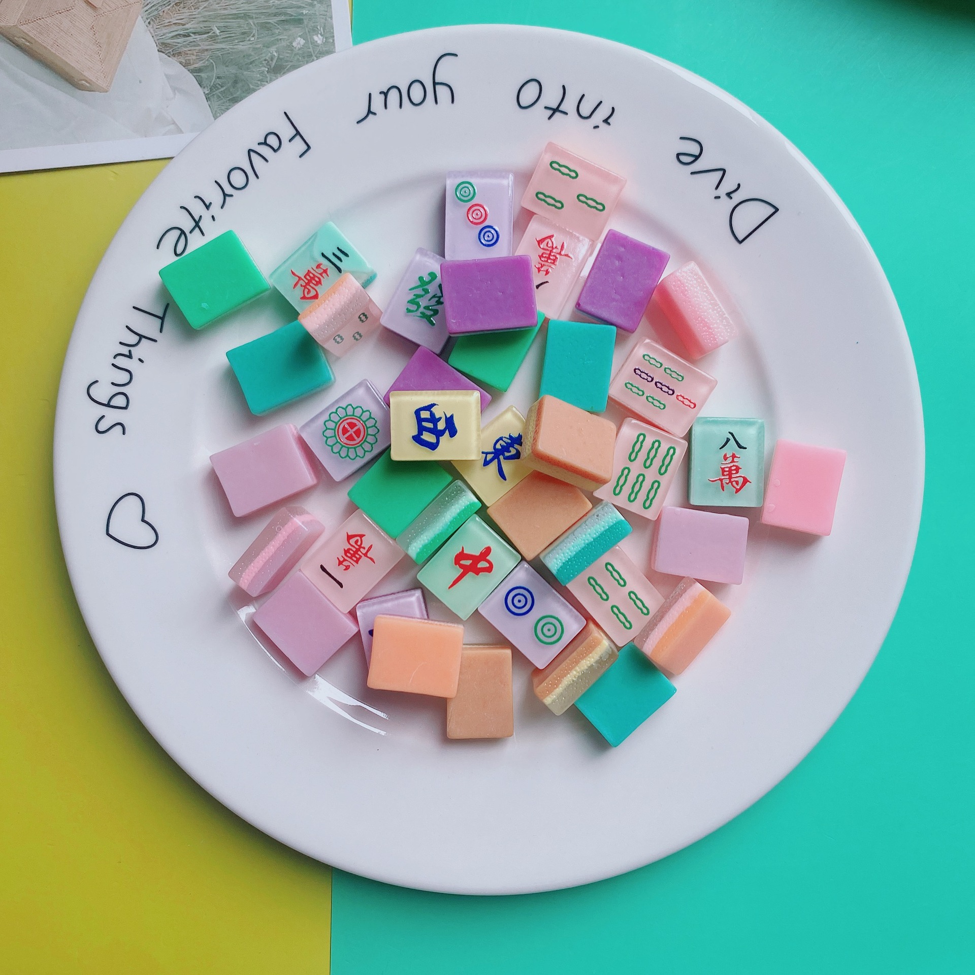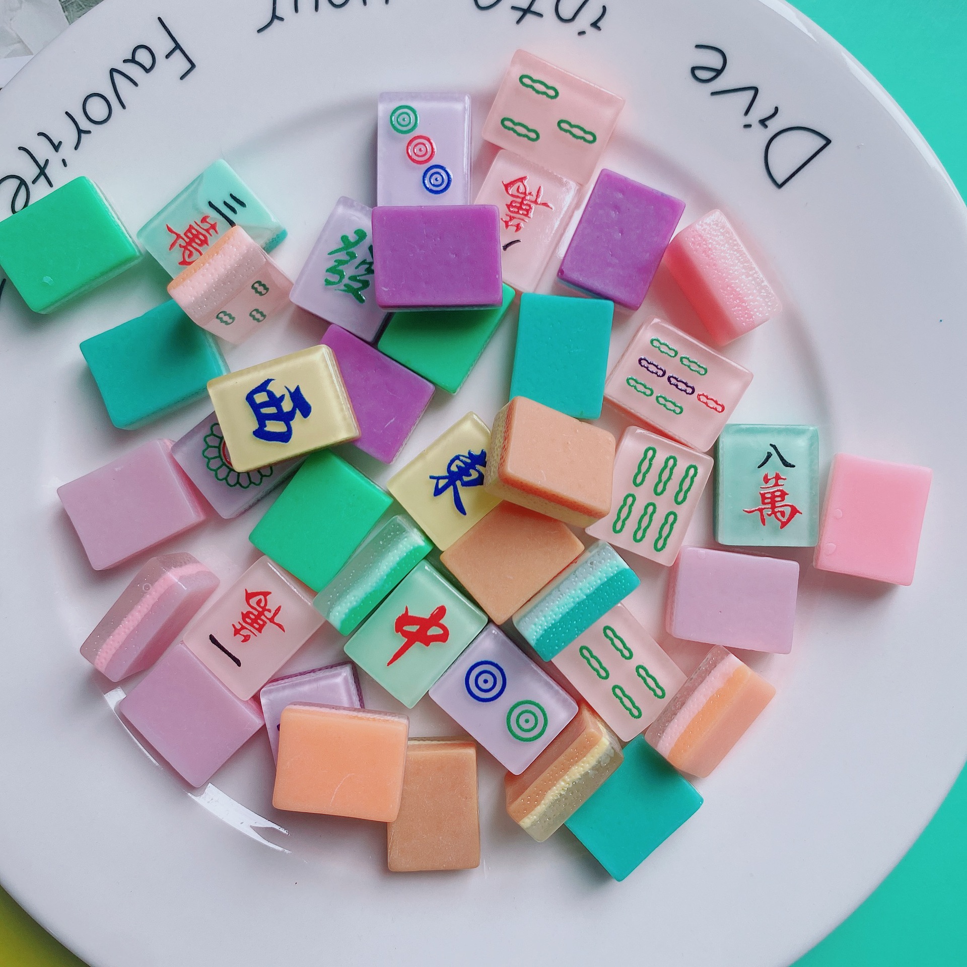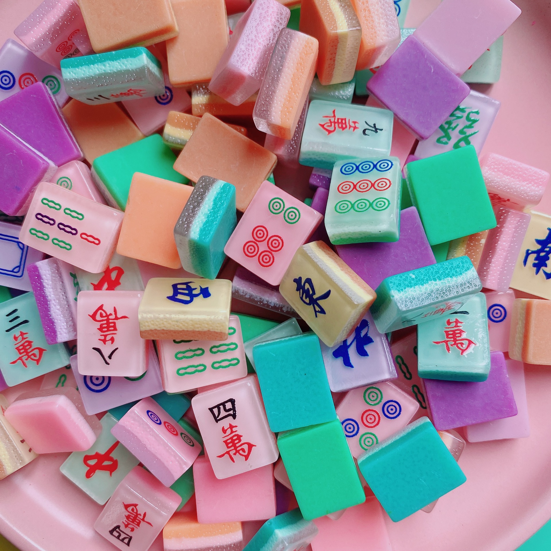 Tik Tok Bang luminous mahjong resin simulation cartoon mahjong handmade diy jewelry whole pair of mahjong can play mahjong