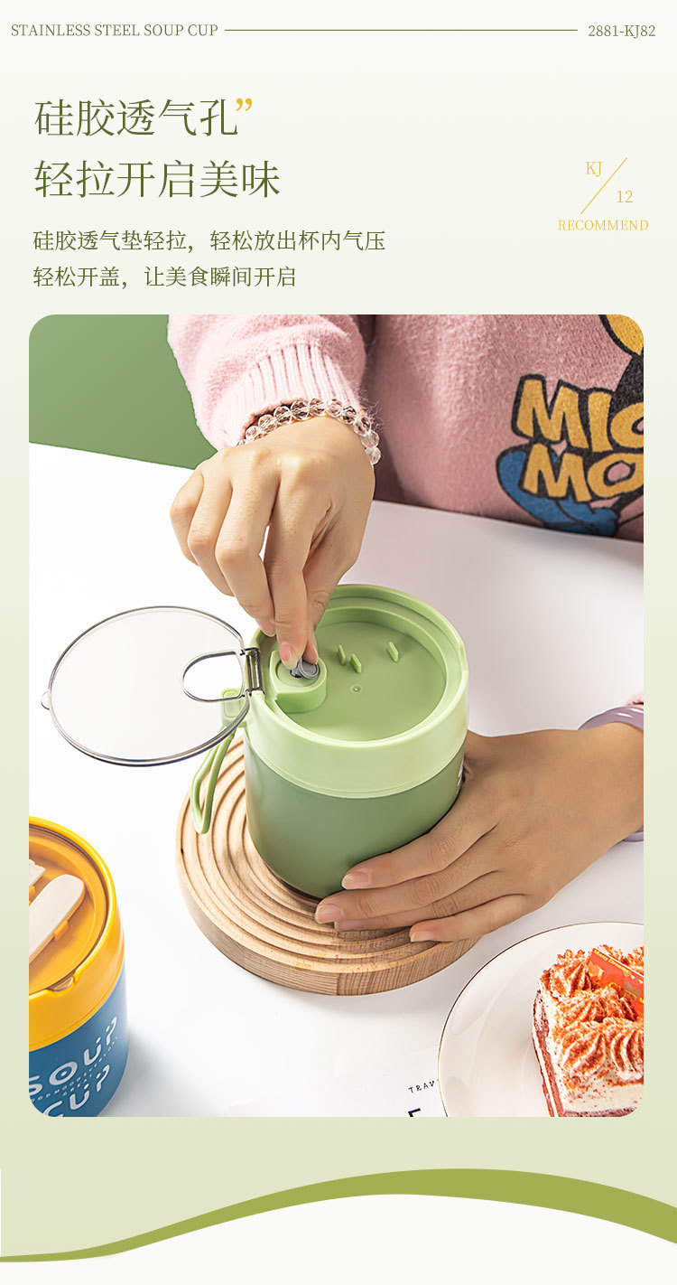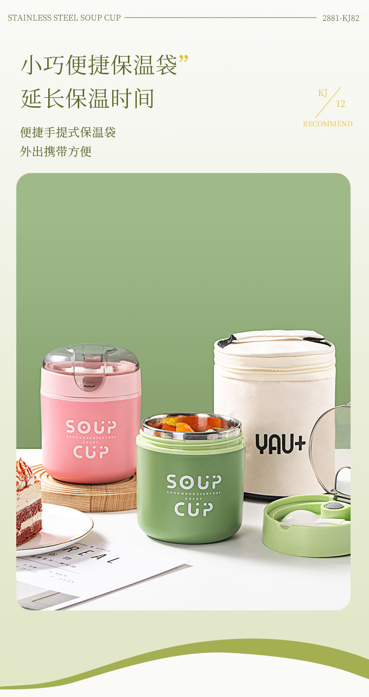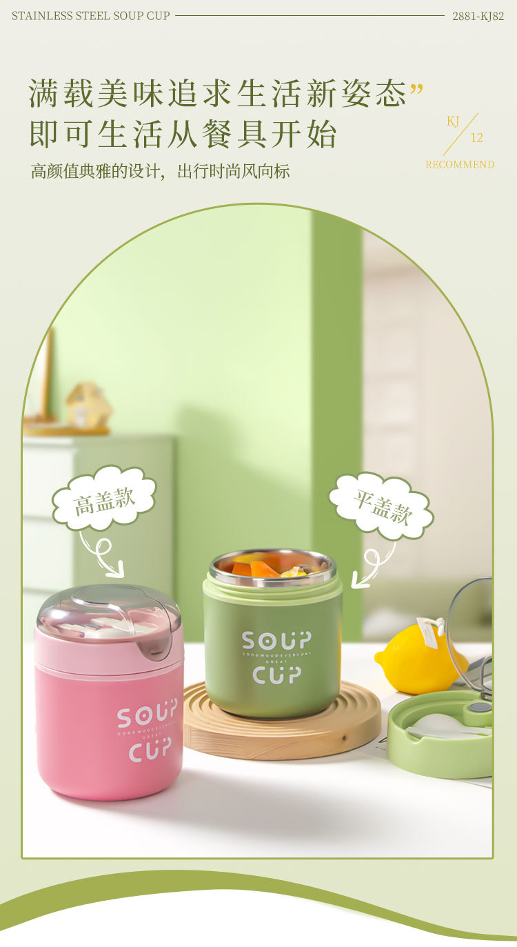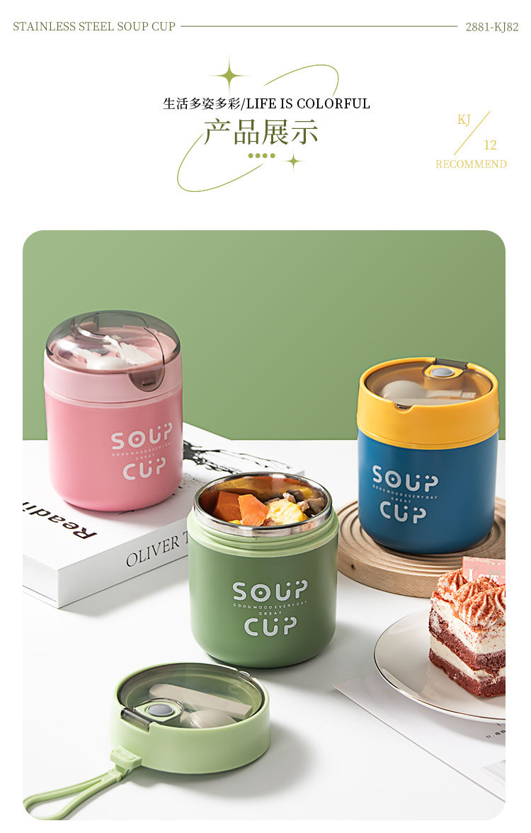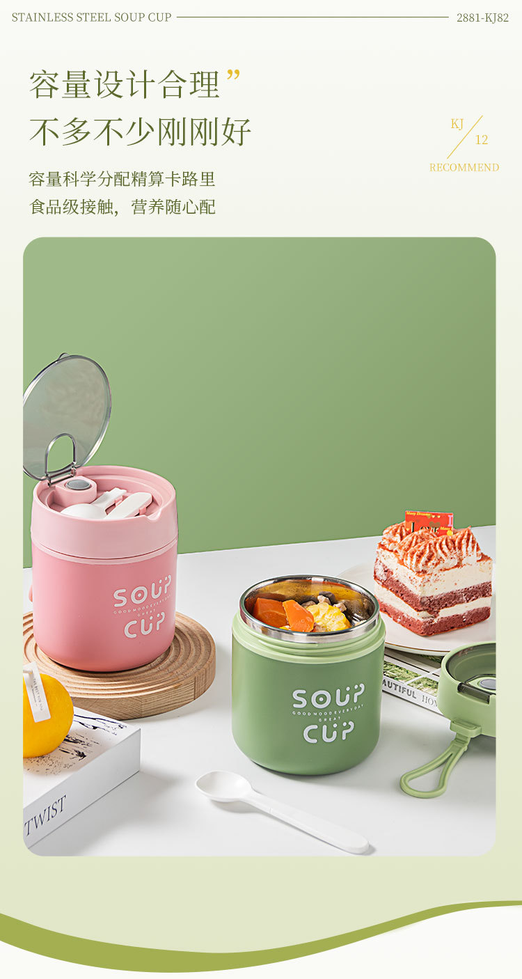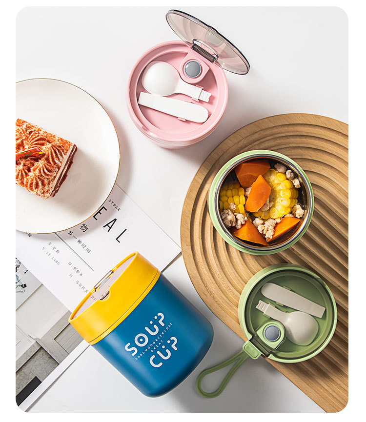 New stainless steel breakfast cup soup cup with lid scoop Portable oatmeal cup sealed milk cup soy milk soup cup student soup