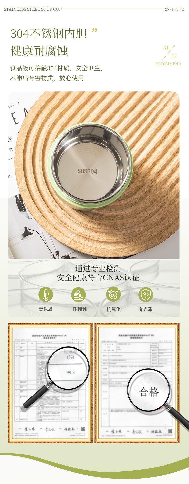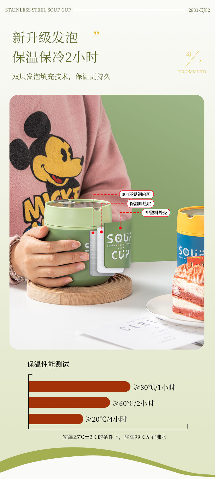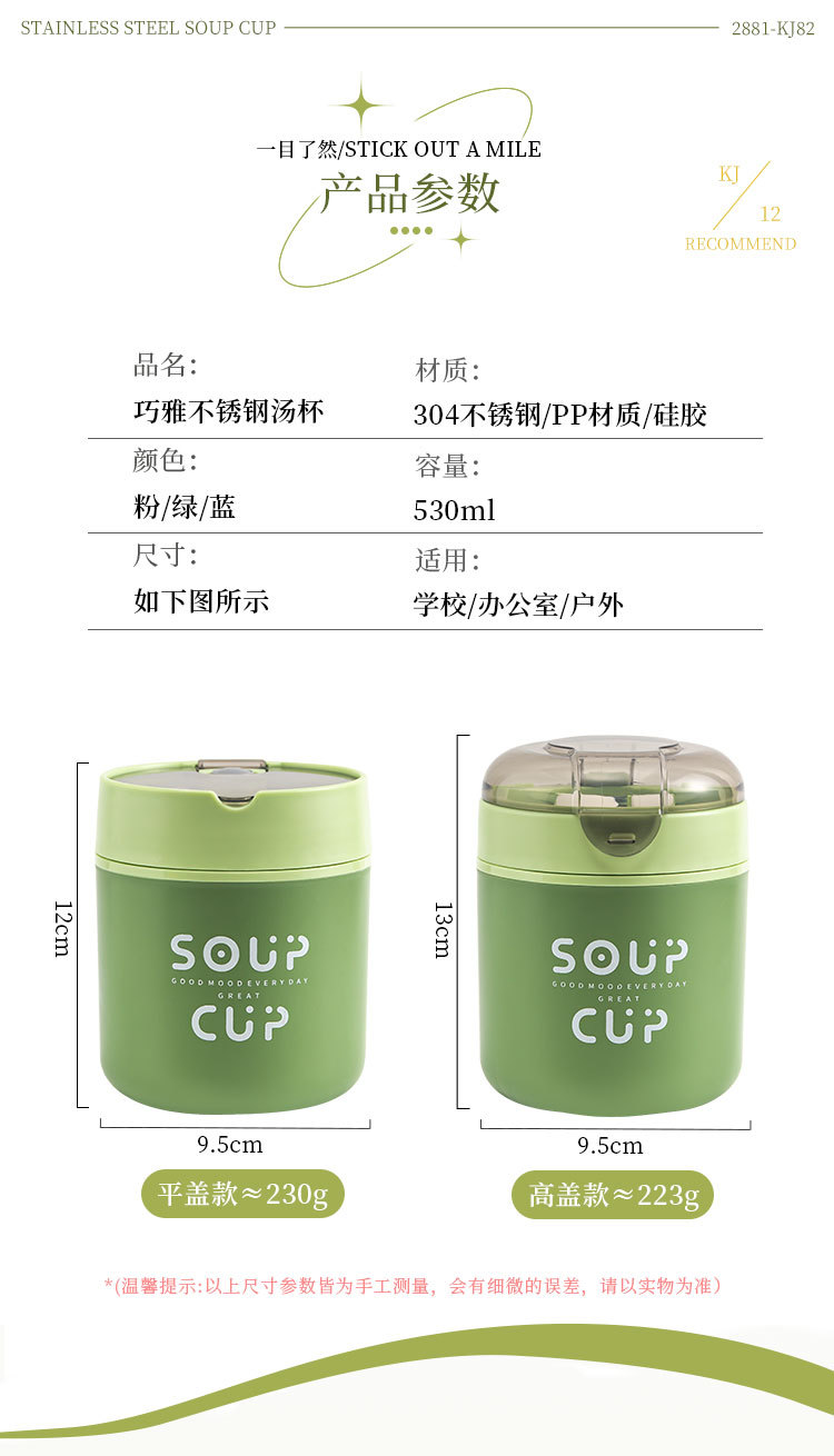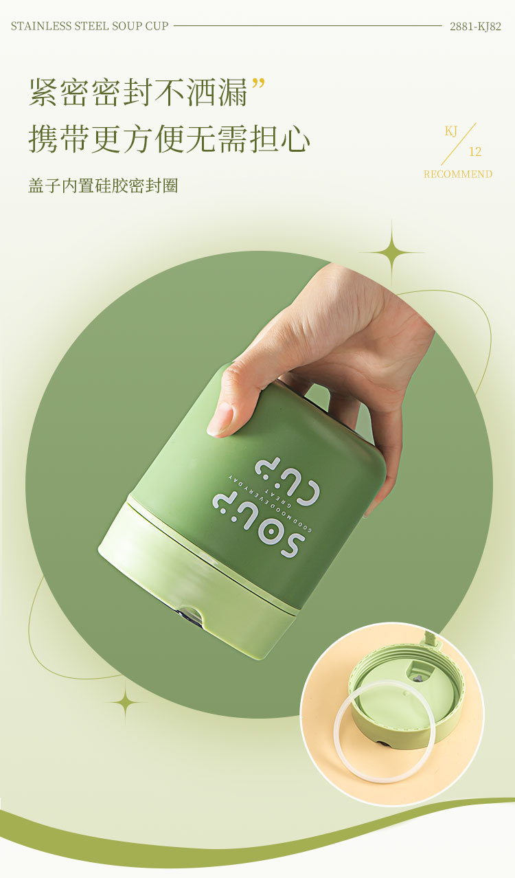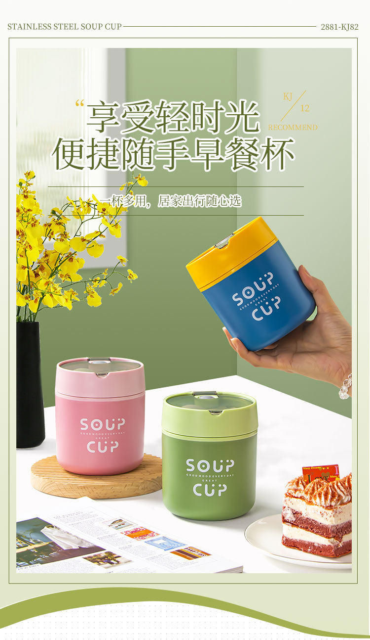 New stainless steel breakfast cup soup cup with lid scoop Portable oatmeal cup sealed milk cup soy milk soup cup student soup