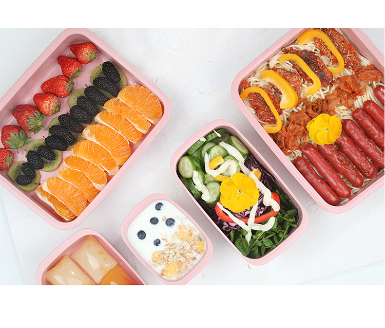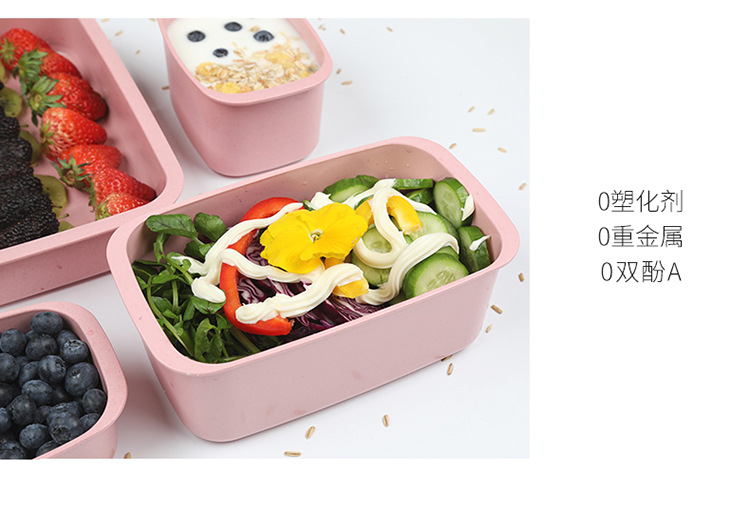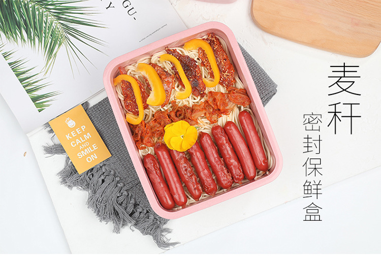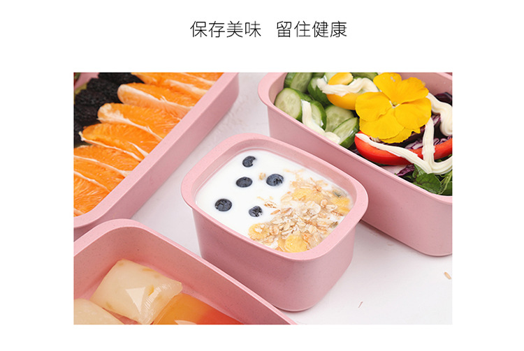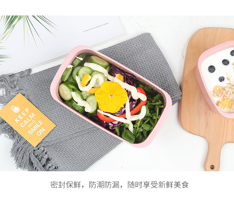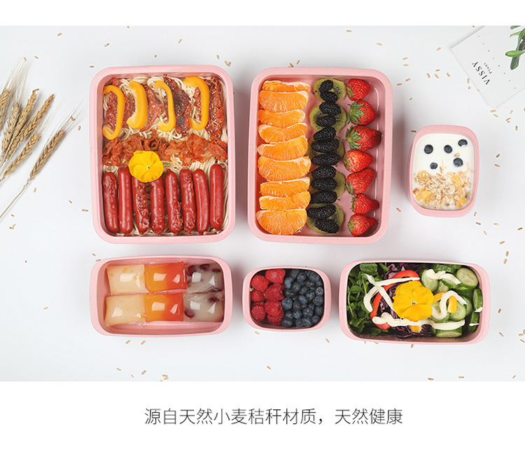 Portable student children's wheat straw lunch box Japanese single-layer side split box Microwave lunch crisper box