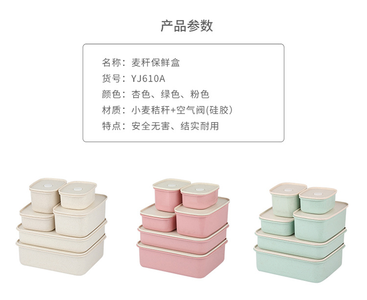 Wheat platycodon seal crisper kitchen fruit food storage box Refrigerator storage box Sealed storage tank set