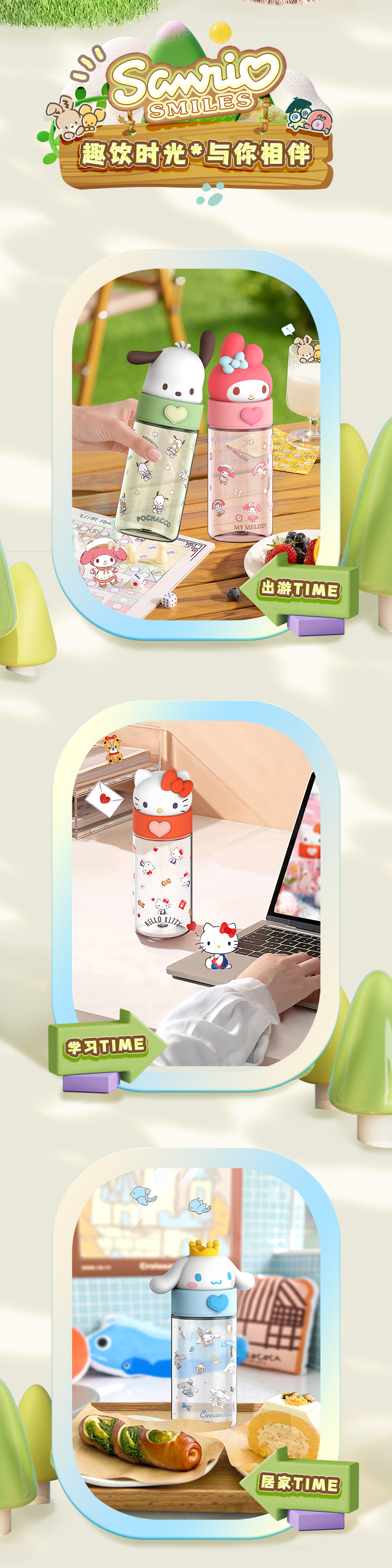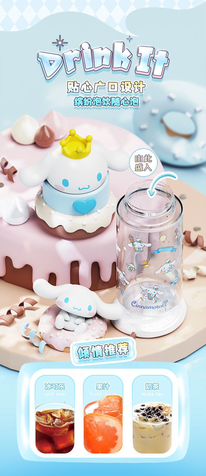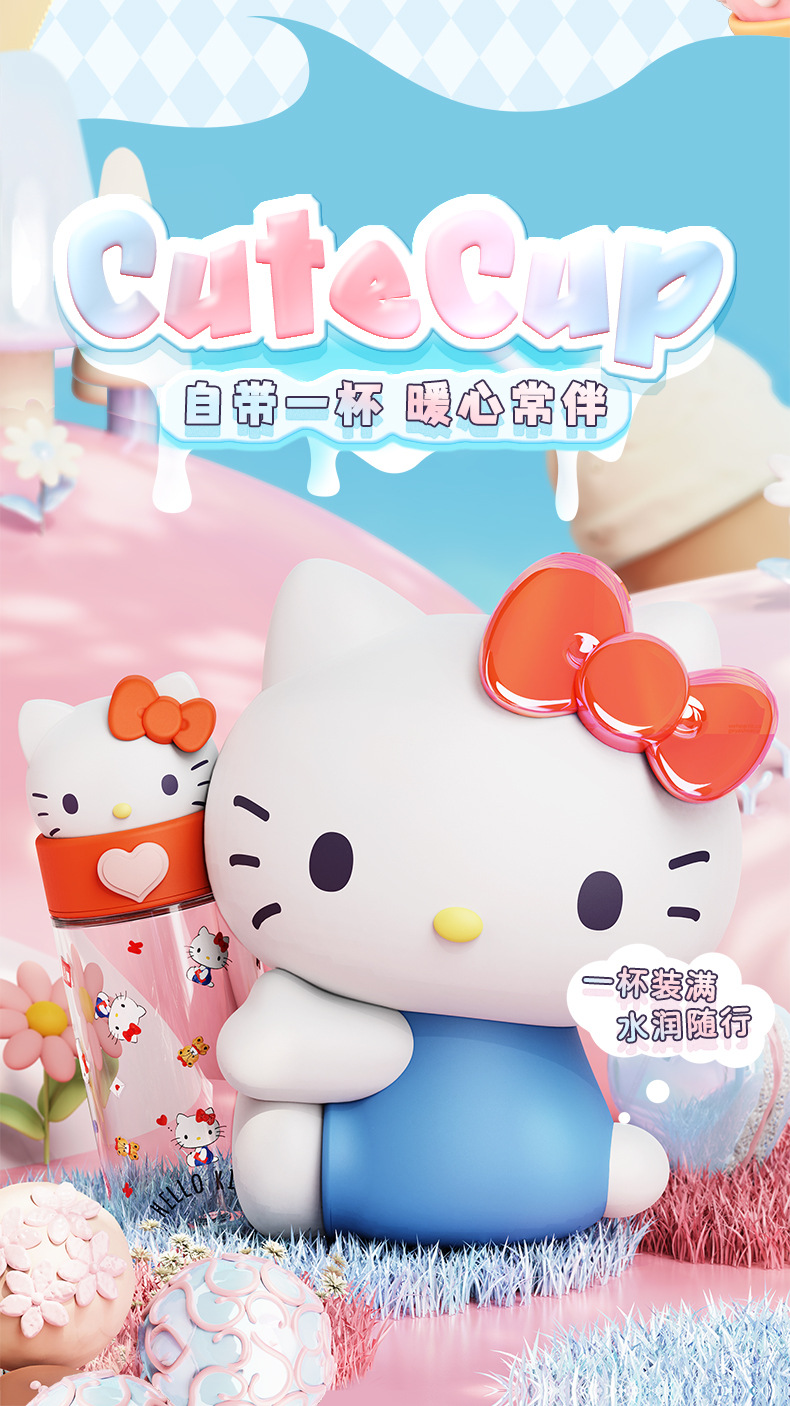 850ml three-dimensional shape can be carried can be carried on the back light resistance to fall out not afraid to touch Sanrio double drink big belly cup
