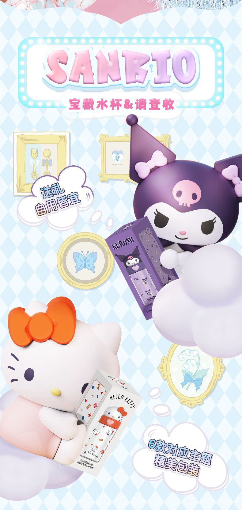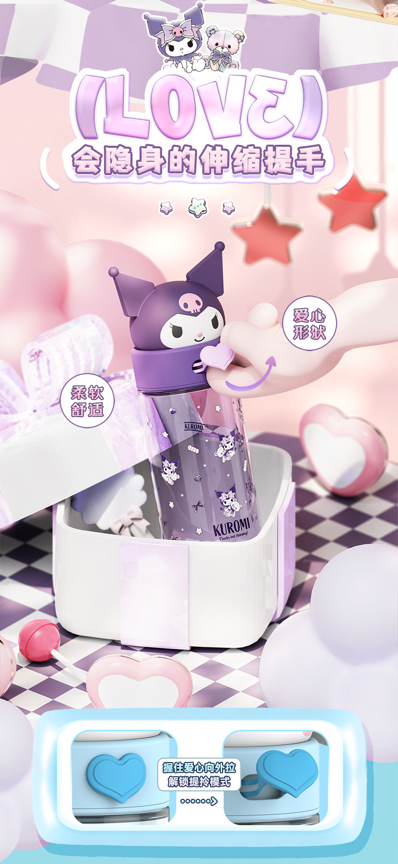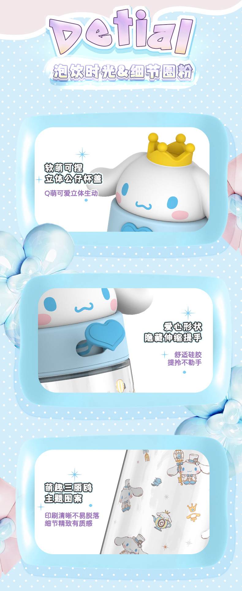 850ml three-dimensional shape can be carried can be carried on the back light resistance to fall out not afraid to touch Sanrio double drink big belly cup
