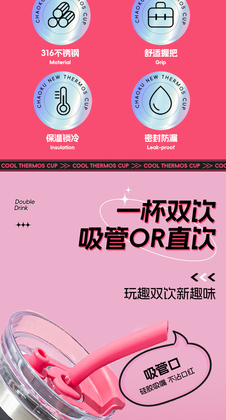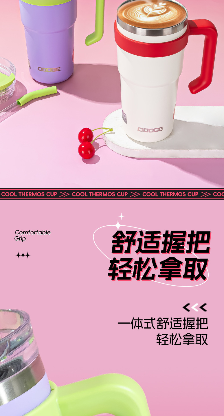 Taishuo new large capacity ice bula cup 304 stainless steel thermos cup straw coffee cup Car handle coffee cup
