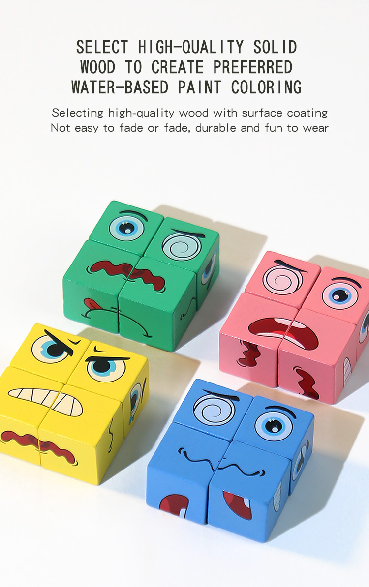 Iron box set four against the face building blocks children enlighten wooden logical thinking training fun expression changing face Rubik's cube building blocks three-dimensional puzzle toy happy party board game