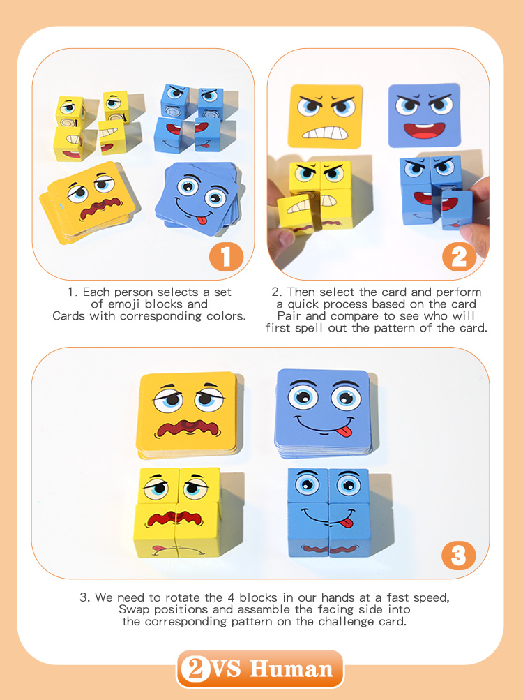 Iron box set four against the face building blocks children enlighten wooden logical thinking training fun expression changing face Rubik's cube building blocks three-dimensional puzzle toy happy party board game Application Scenario