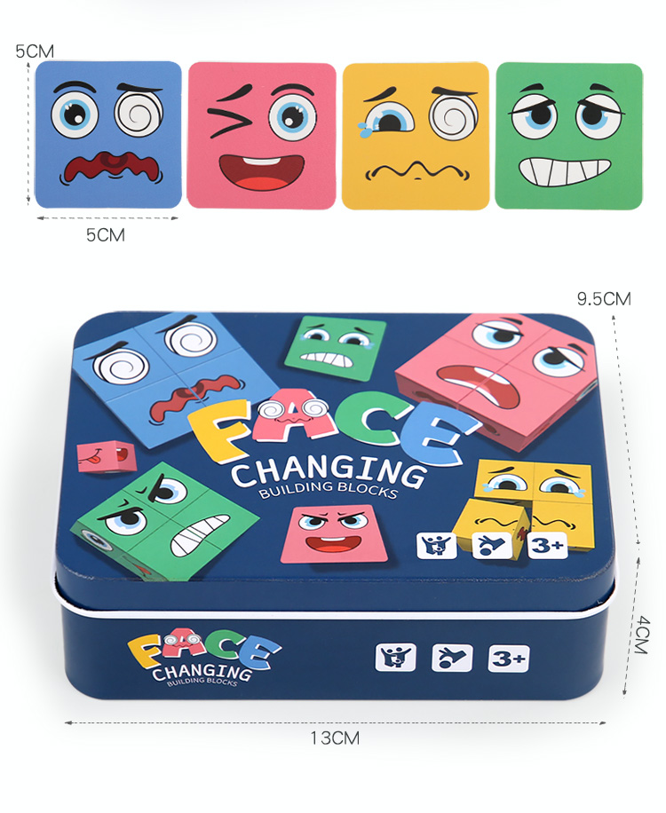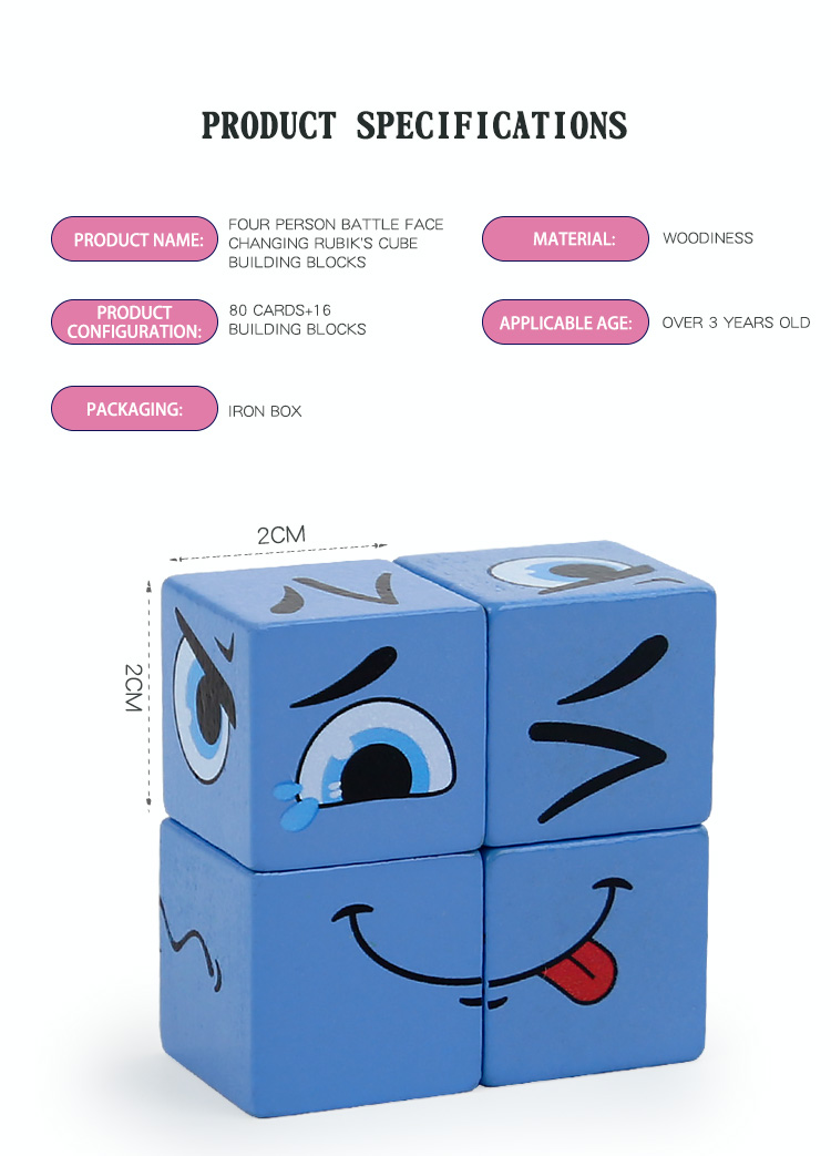 Iron box set four against the face building blocks children enlighten wooden logical thinking training fun expression changing face Rubik's cube building blocks three-dimensional puzzle toy happy party board game Specification drawing