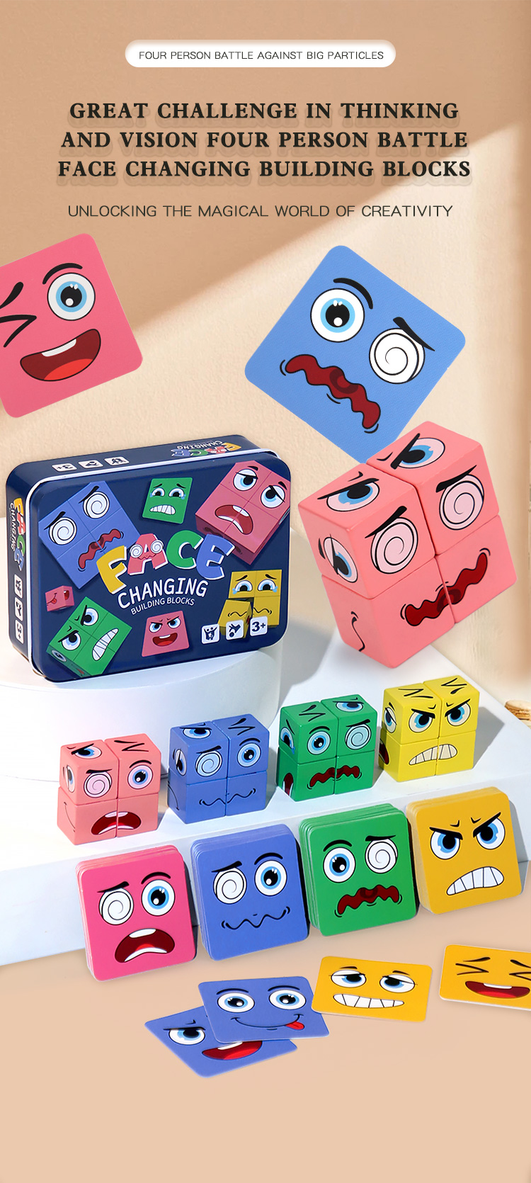 Iron box set four against the face building blocks children enlighten wooden logical thinking training fun expression changing face Rubik's cube building blocks three-dimensional puzzle toy happy party board game Item Picture