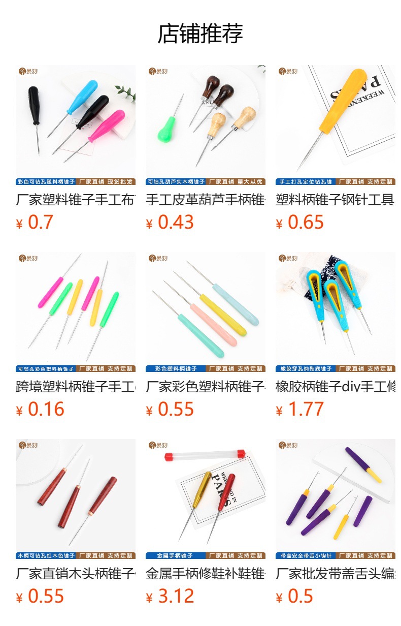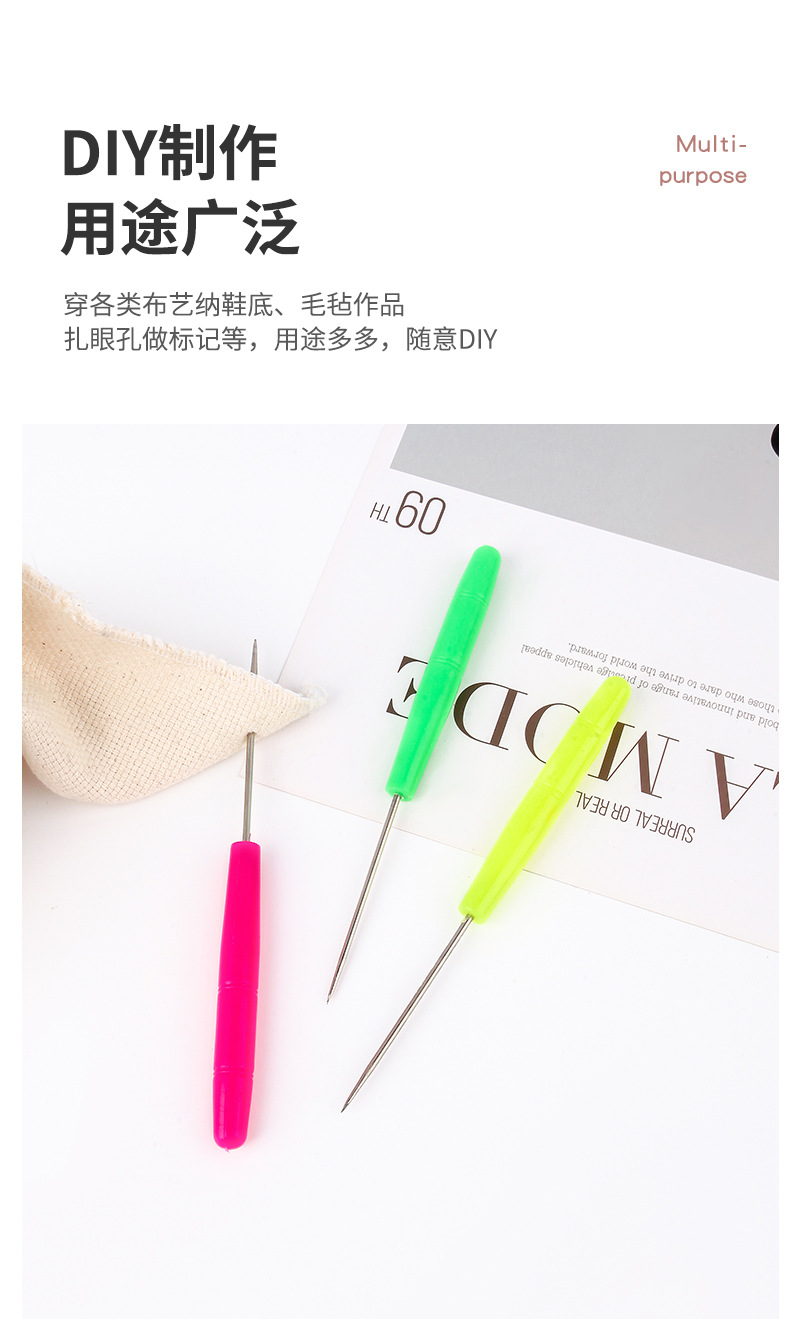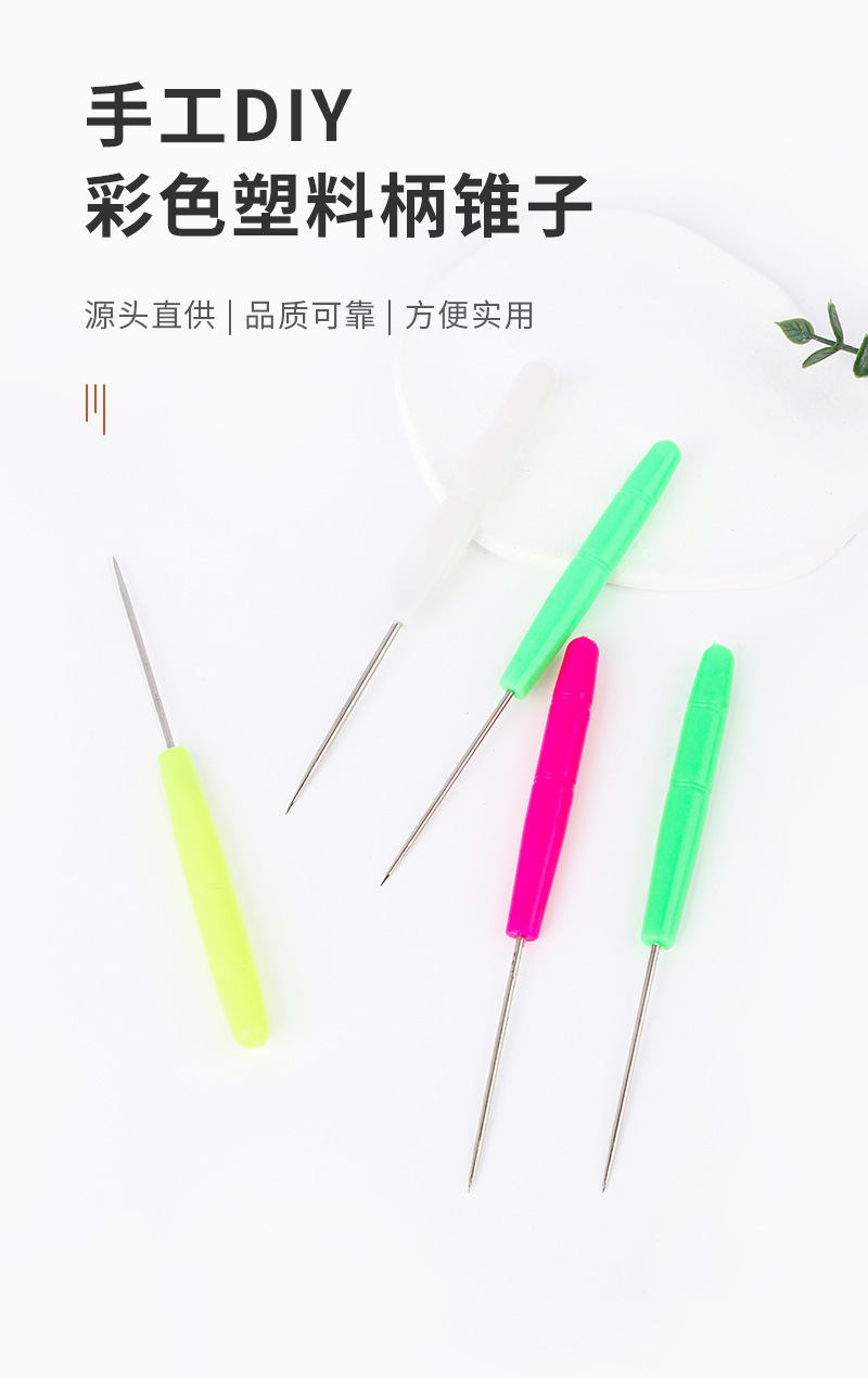 Cross-border plastic handle awl hand diy drilling shoe tools punch and pick needle thousands of repair shoe needle cone straight cone wholesale