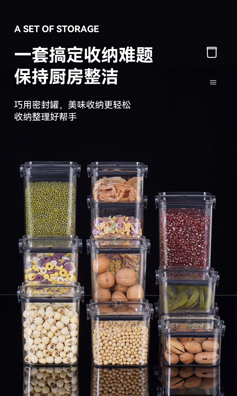 Yiwu Good Goods Household Five-Grain Storage Box, Food with Lid, Square Grain Jar, Plastic Transparent Storage Box, Three-piece Set, Sealed Jar -1006/35978