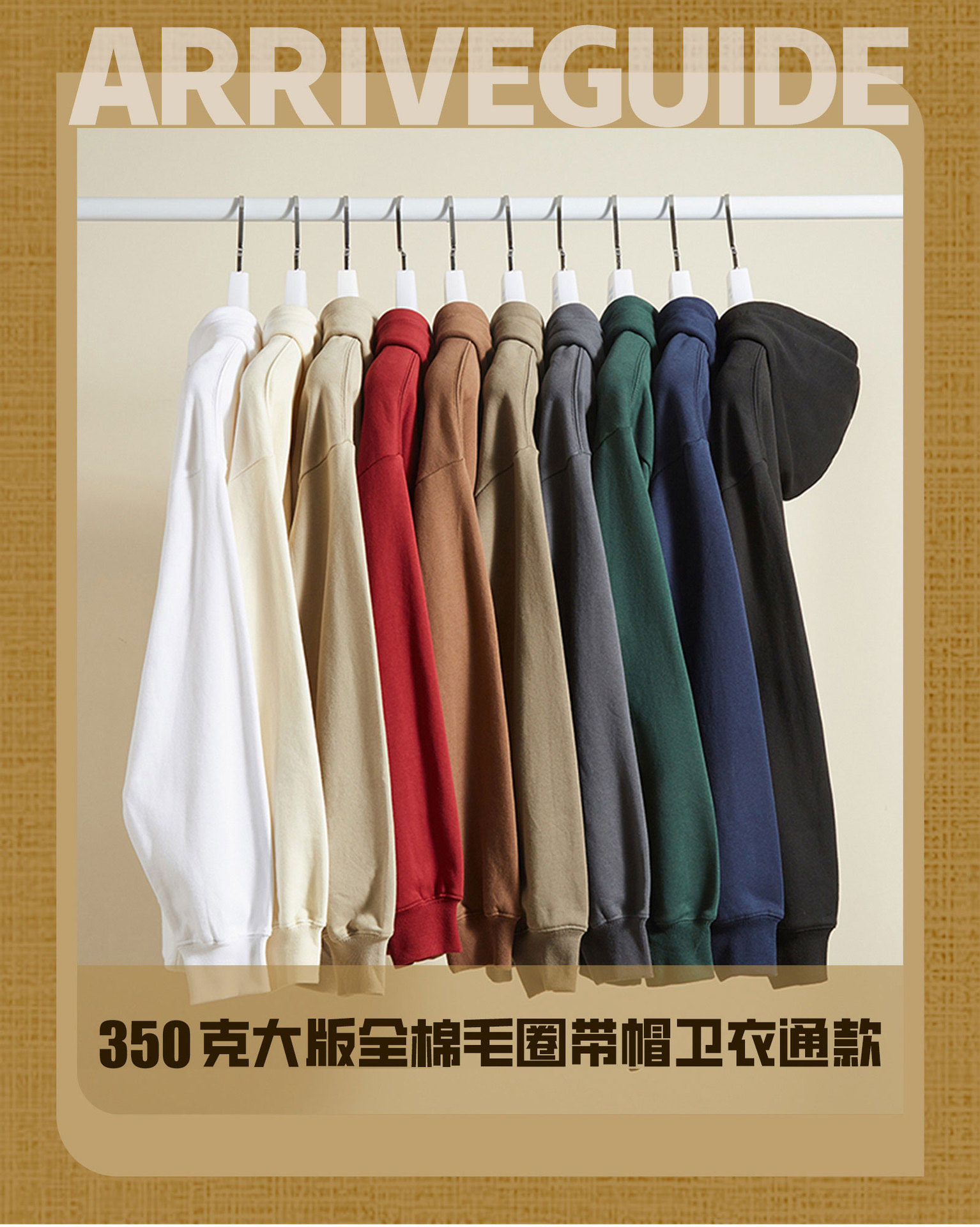 A new 350g pure cotton loop hooded sweatshirt for men, custom-printed loose off-the-shoulder sweatshirt for spring and autumn