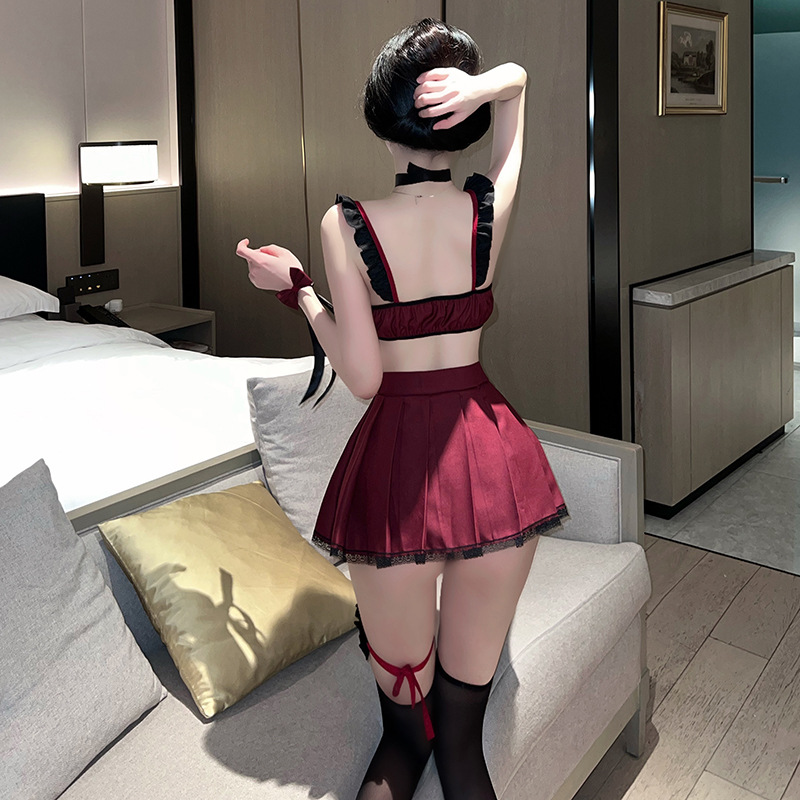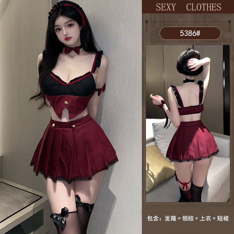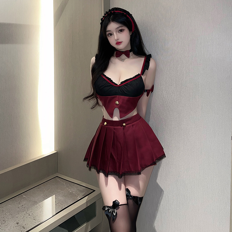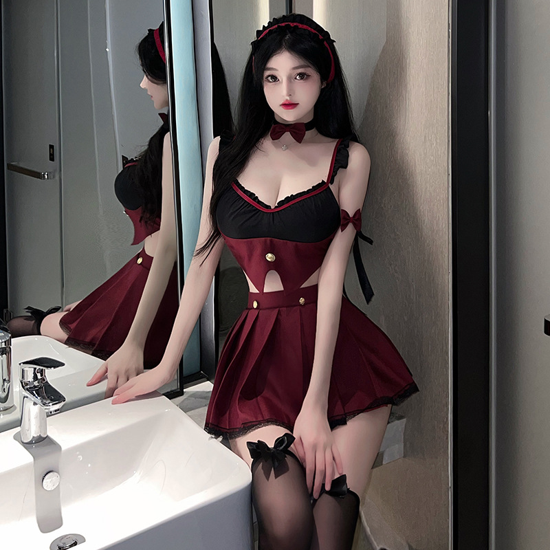 The seductive lingerie with a small chest makes one look big and hot. The maid's uniform with pure desire is passionate, sexy and flirtatious