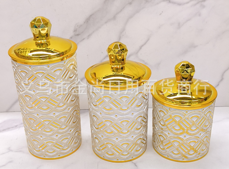 New type of foreign trade tea cans, candy cans, kitchen sealed cans, round gold and silver handle storage cans, living room wholesale