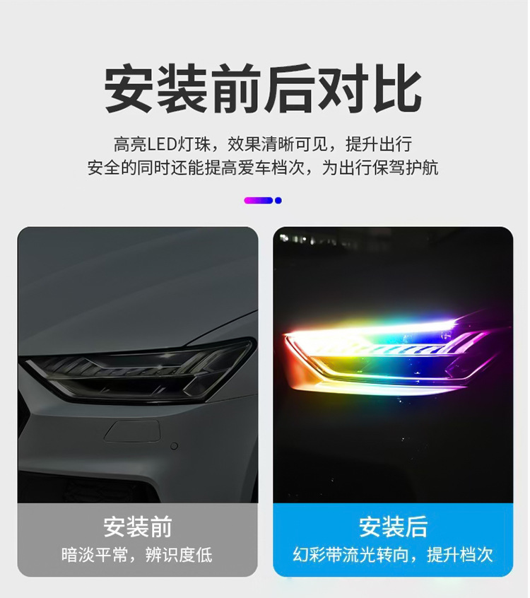 Product Name: Automotive Phantom Color LED High-Brightness Light Guide Running Horse Flowing Light Rotating Lamp