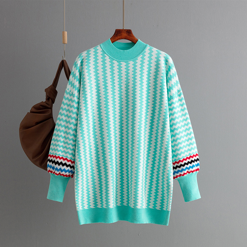 A new high-neck sweater for women from Europe and America, featuring a fashionable and casual style with a loose pattern and a pullover knitted sweater