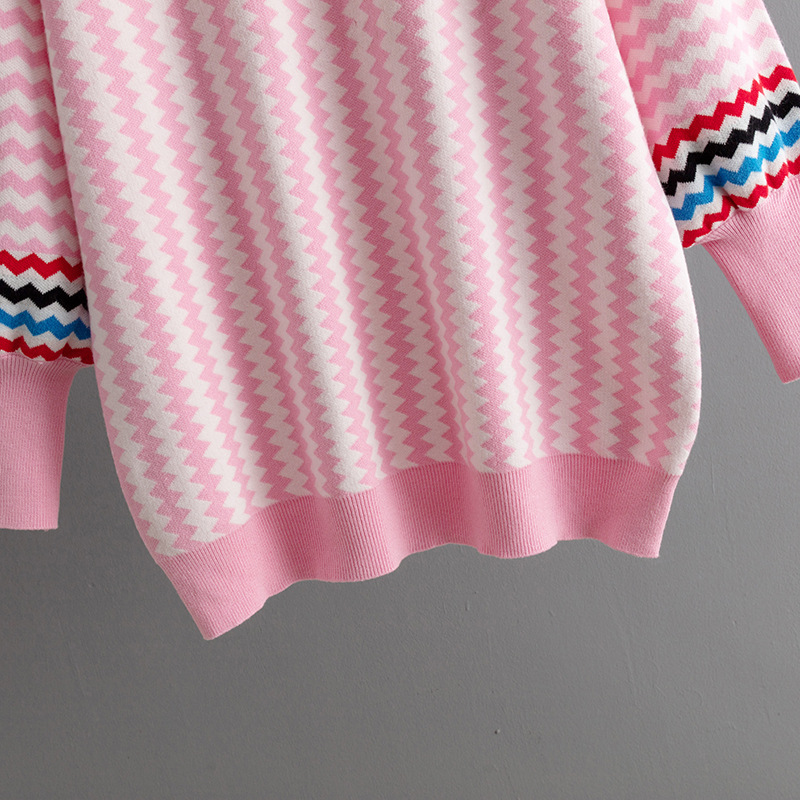 Cross-border foreign trade Amazon striped contrasting color loose long-sleeved T-shirt, European best-selling knitted sweater, high-end top