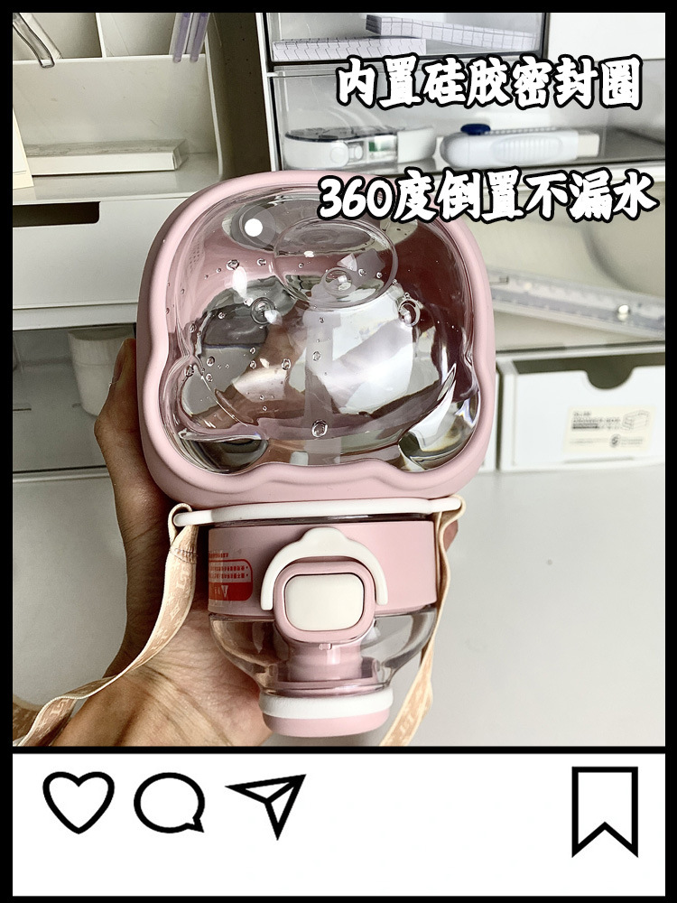 Children's summer big belly water cup, students' high appearance level crossbody plastic straw cup, girls' cloud bear bouncing water cup
