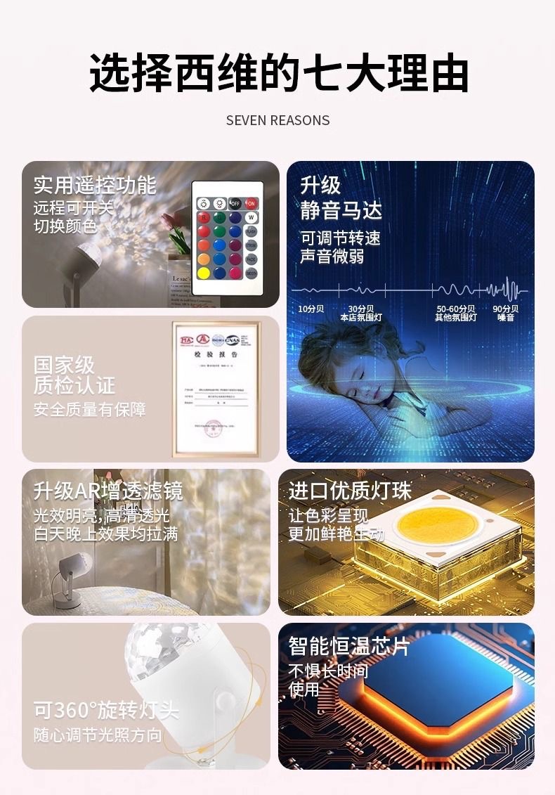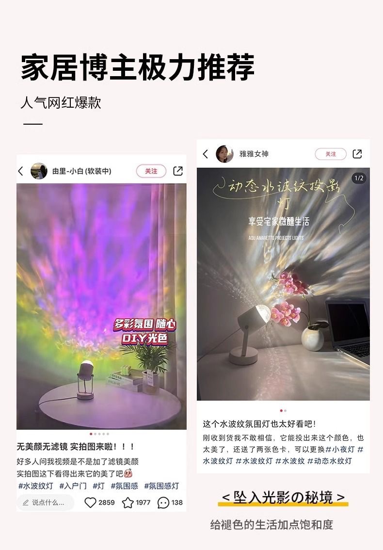The same LED water ripple rotating + remote-controlled Northern light crystal night light projection atmosphere desk lamp as on Douyin and Xiaohongshu
