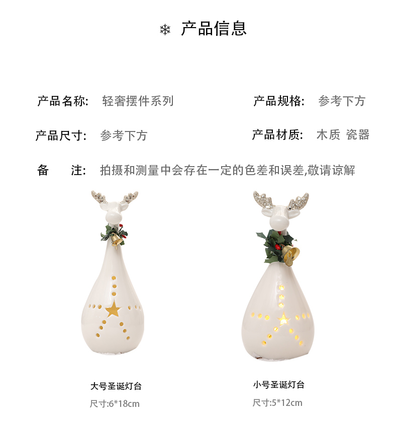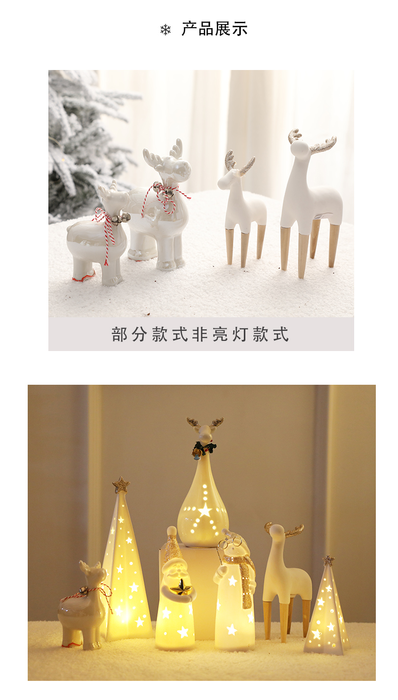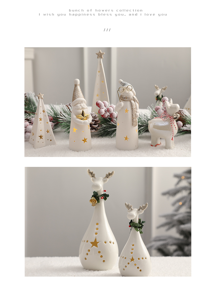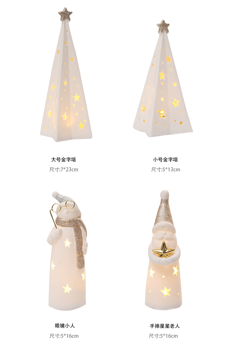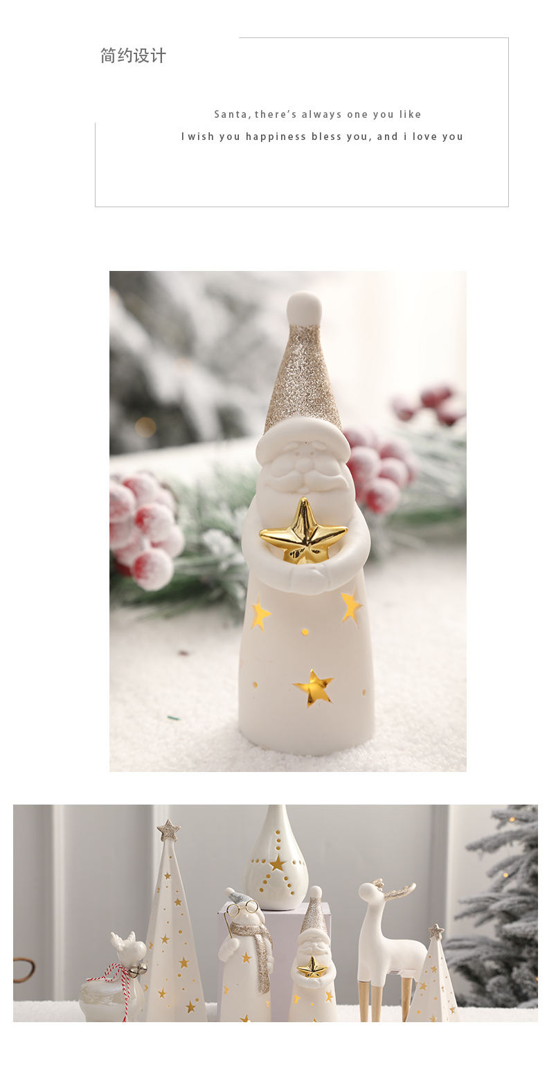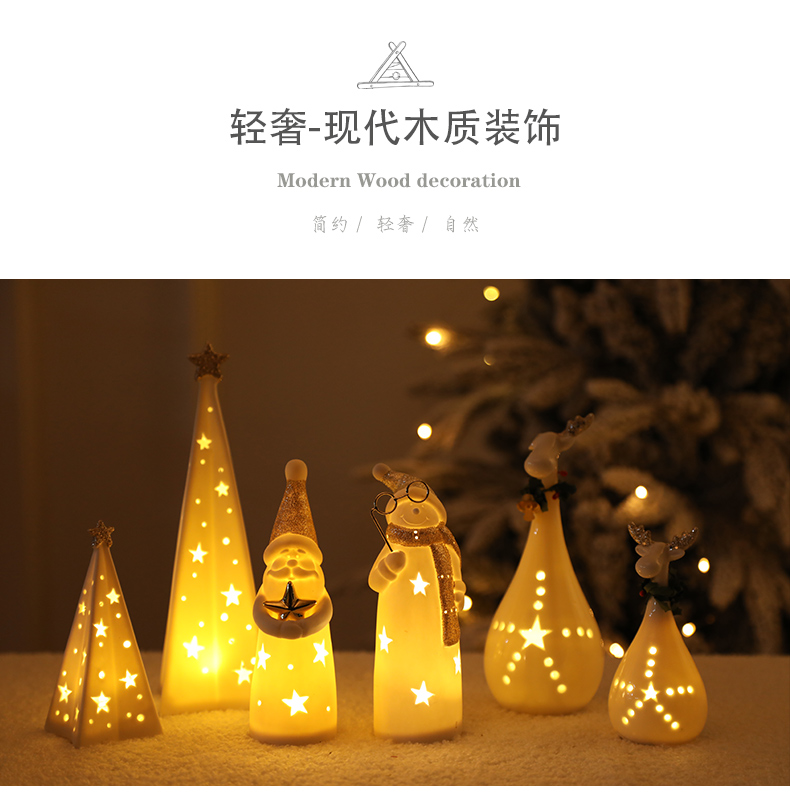 Christmas decoration: Home desktop ornaments, mini ceramic Christmas snowman, Old man, elk, luminous lamp decorations