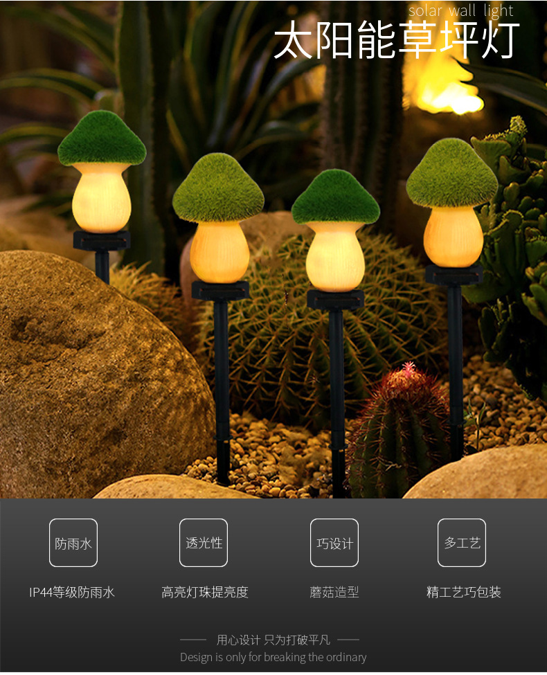 Cross-border new products: solar garden lights, outdoor landscape lights, flocked mushroom lawn ground inserts, and atmosphere decorative lawn lights