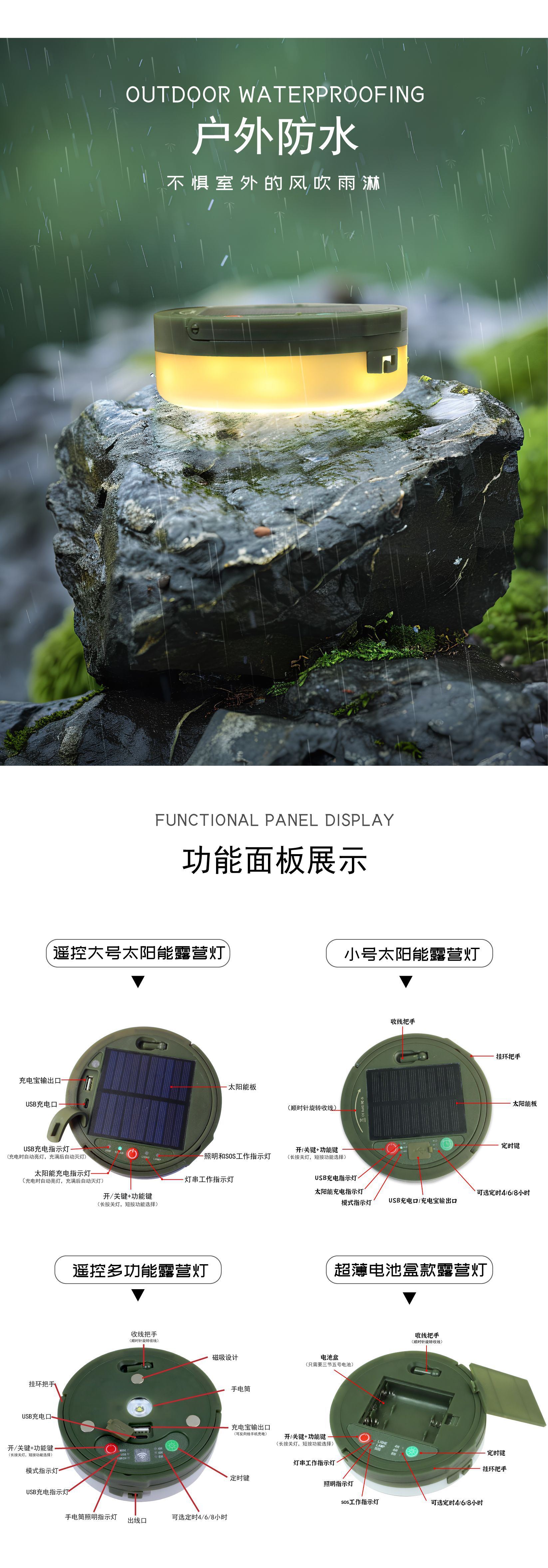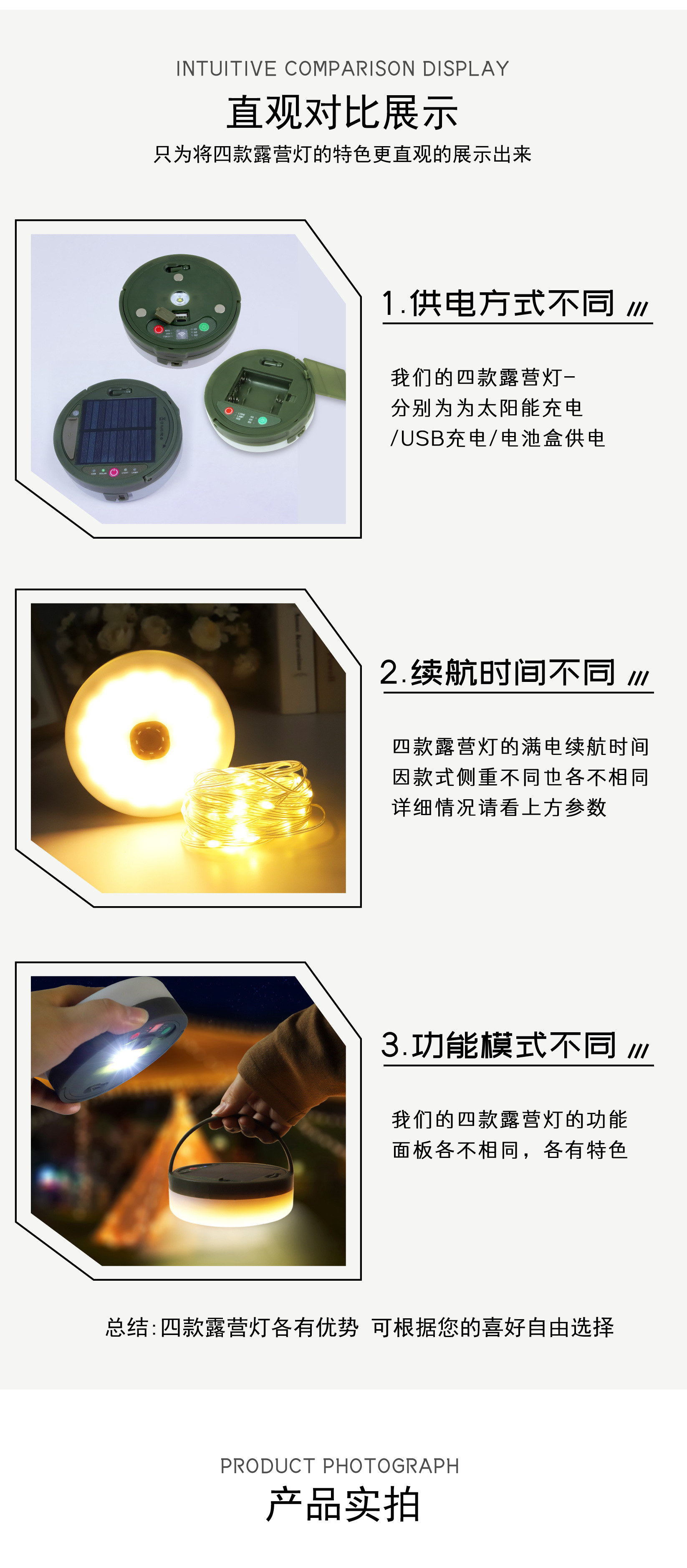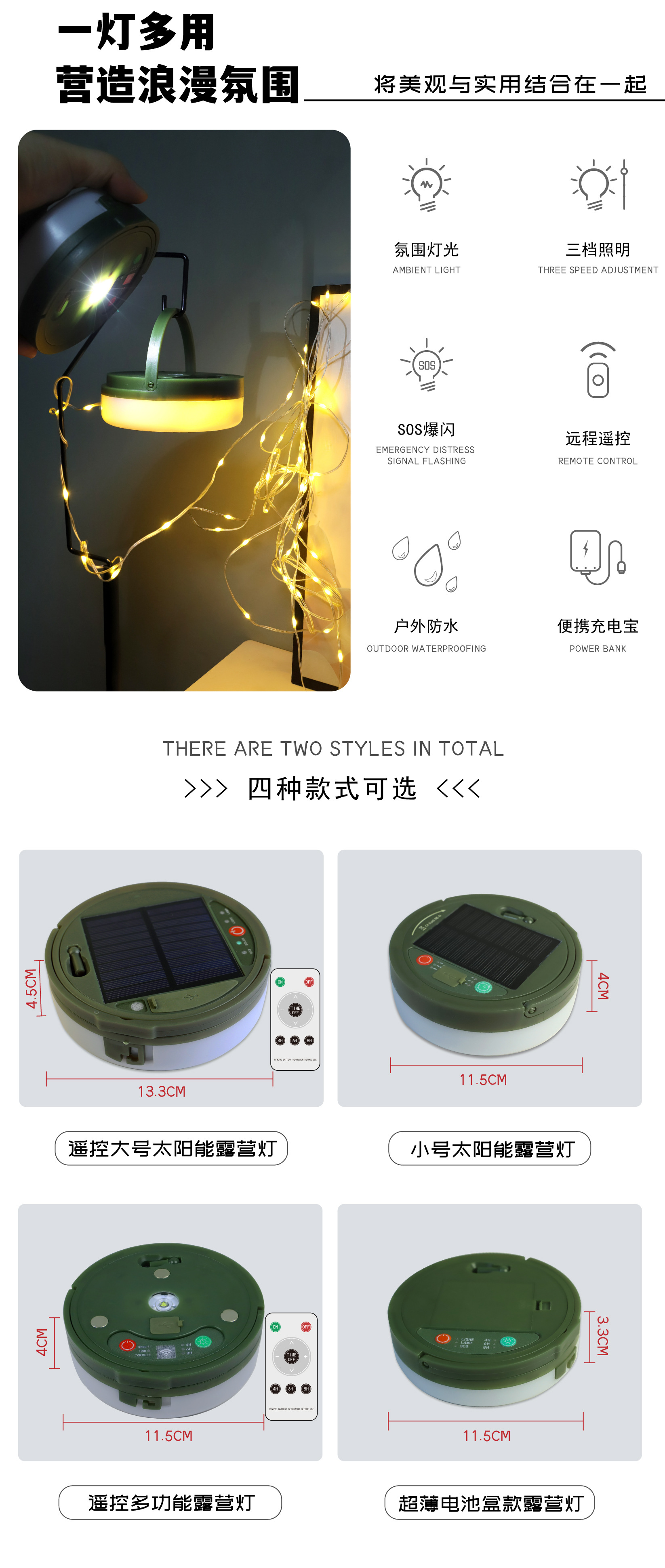 Solar-powered outdoor camping lights, tents, emergency atmosphere lights, lighting fixtures, tape measures, storage camping light strings