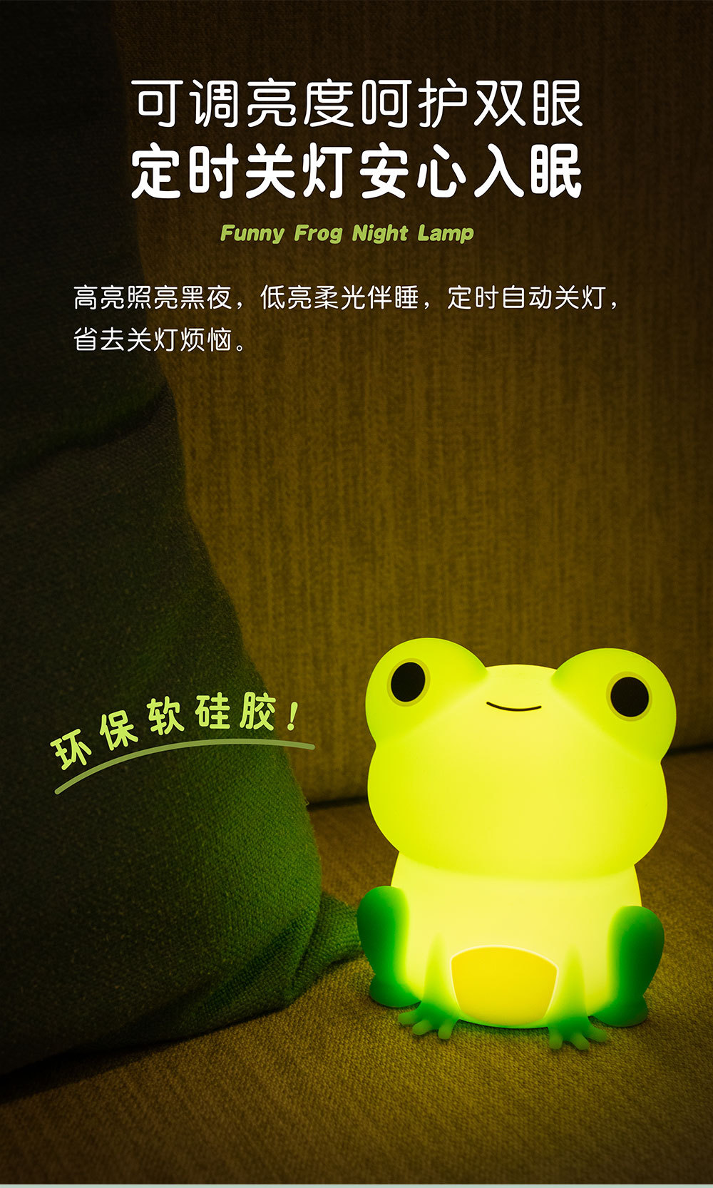 Color-changing Qiqi Frog silicone night light for sleeping, patting and charging, timer cartoon baby wake-up light, feeding bedroom