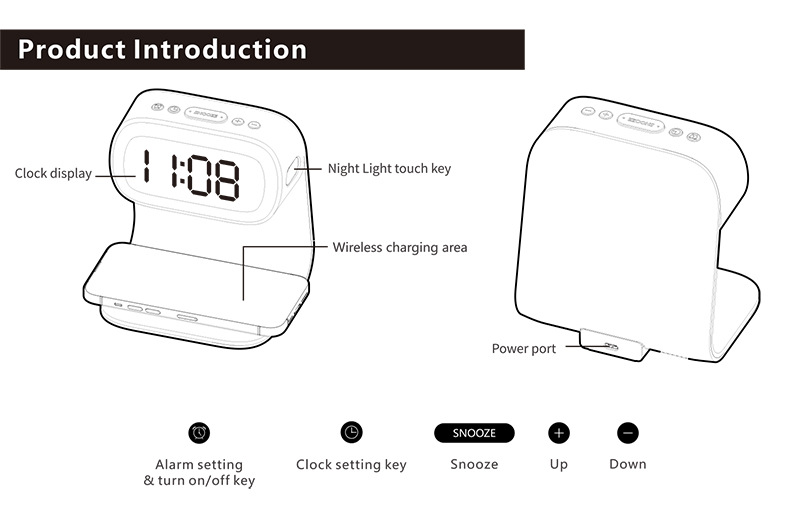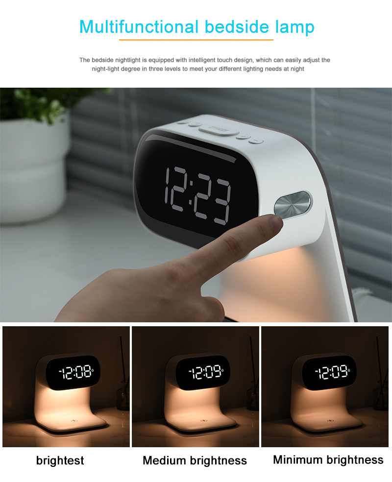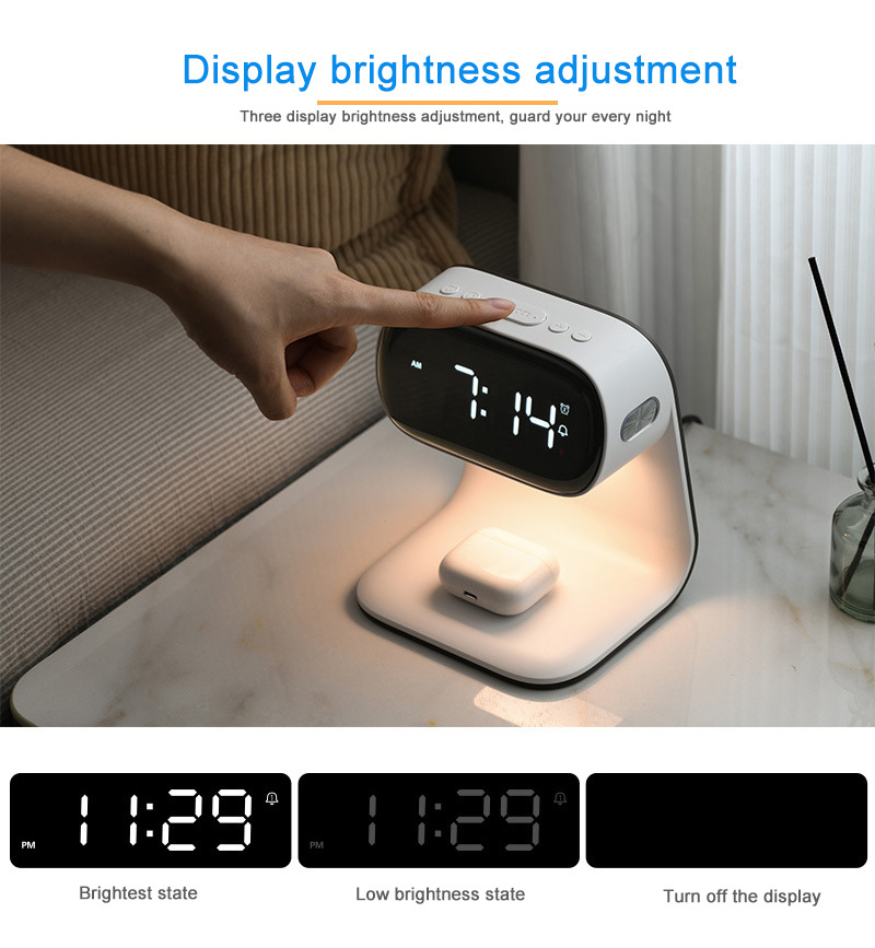 Cross-border 2024 new wireless charging bedside night lamp, 15W fast charging mobile phone earphone charging, alarm clock gift desk lamp